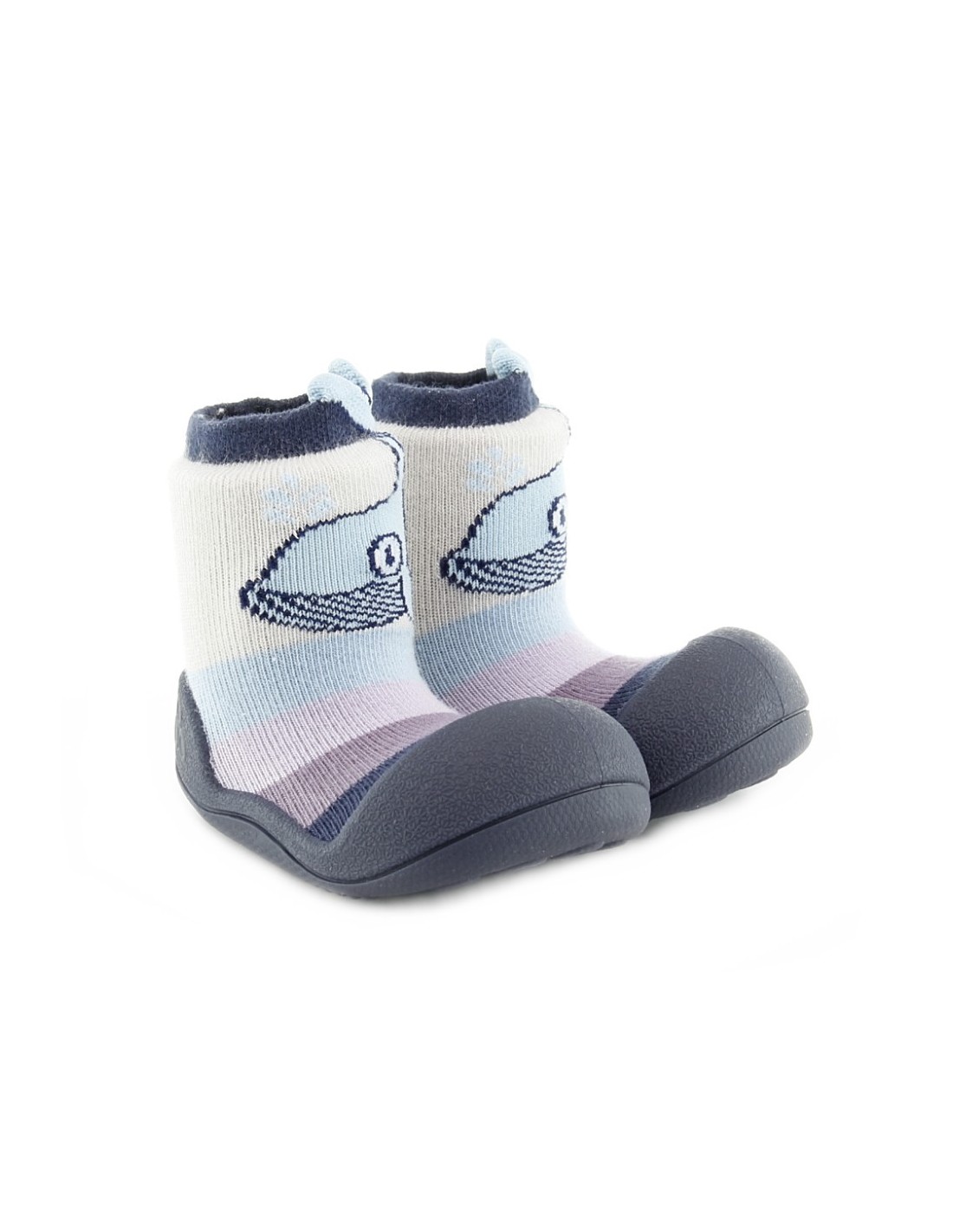 Preciosas zapatillas-calcetines de Attipas, siempre ofreciendo gran comodidad a los más pequeños de la casa con esta chulada de diseños, como estas con detalles de ballenas.