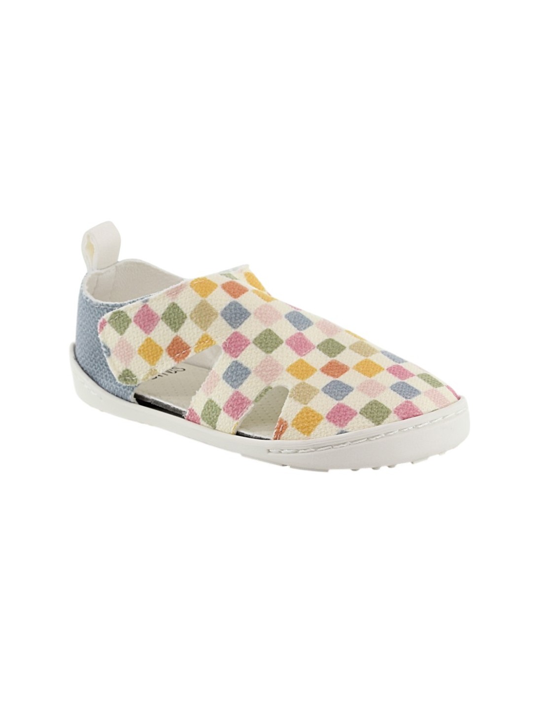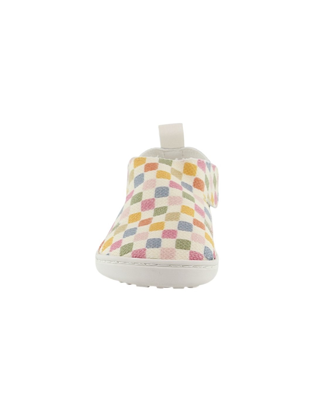 Sandalias cerradas barefoot de la marca Baby Lobitos, modelo Arlequin multicolor. Se ajustan perfectamente a los pies gracias a su cierre con velcro. Tienen una suela de goma muy amplia, plana y flexible que permite una gran libertad de movimiento.