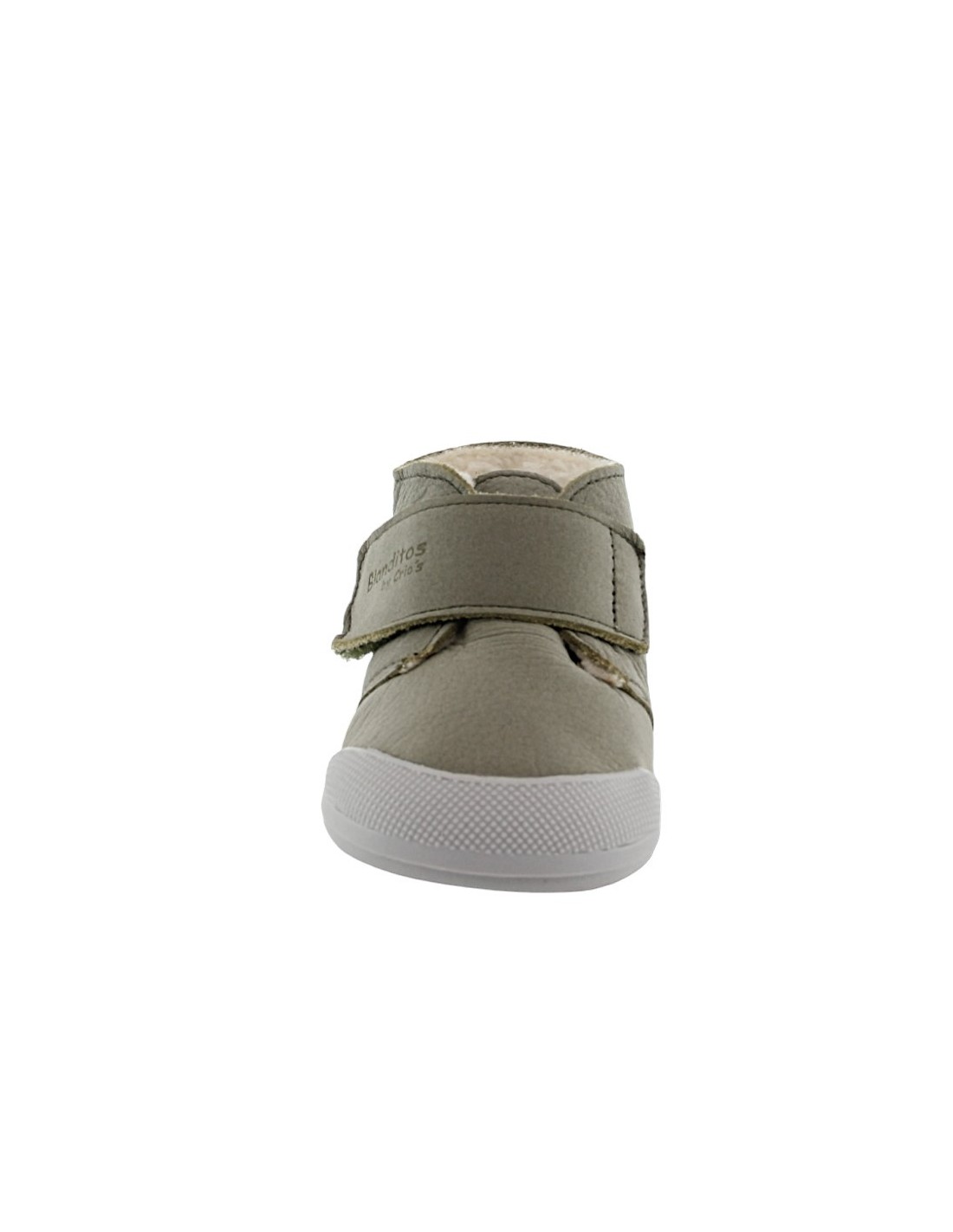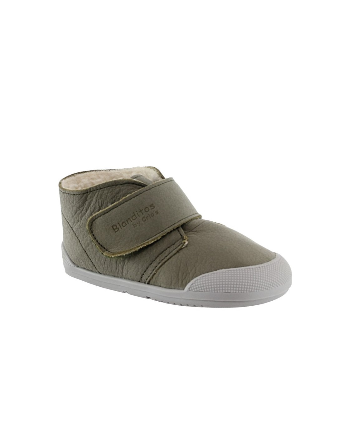 Botines de la marca Blanditos, modelo Sansa de color verde con borreguillo. Se ajustan a los pies gracias a su cierre con velco. Están diseñados para que se adapten a la forma original de los pies, con una suela fina y una plantilla amplia.