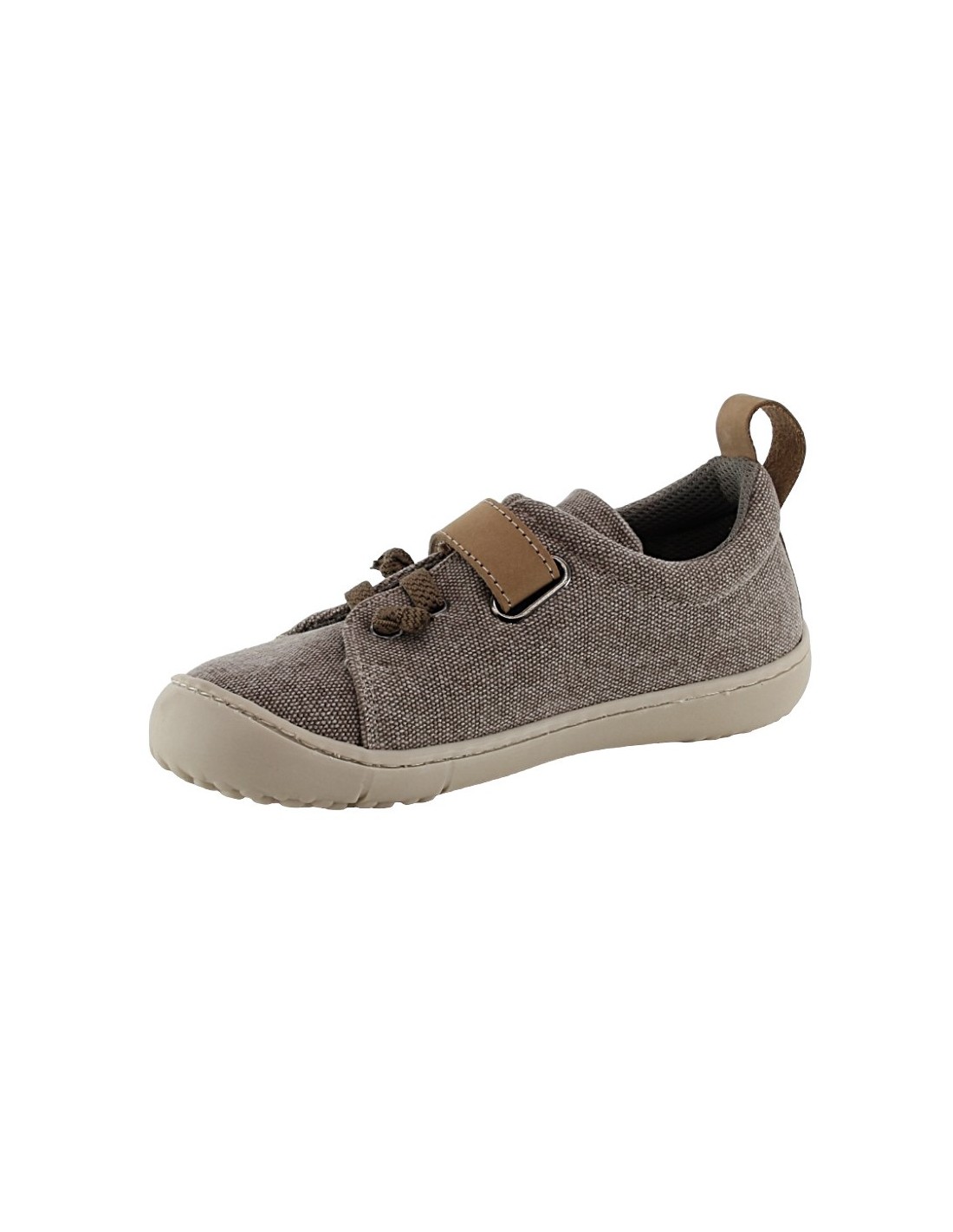 Zapatos respetuosos de la marca Coquette Barefoot, modelo 15223 de color piedra. Se ajustan perfectamente al pie gracias a su cierre con velcro y con cordones. Son muy ligeros y flexibles, perfectos para obtener la sensación de ir descalzos.