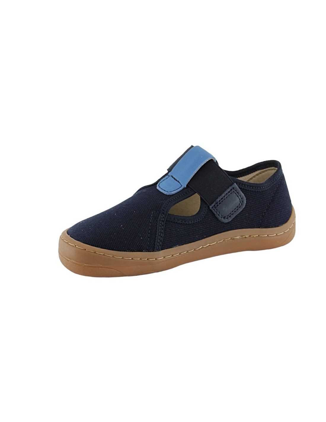 Zapatillas de lona de la marca Froddo, modelo de color azúl oscuro. Estas deportivas barefoot tienen drop 0, una suela flexible y ligera y una plantilla muy amplia. Se ajustan perfectamente a los pies gracias a su cierre con velcro.