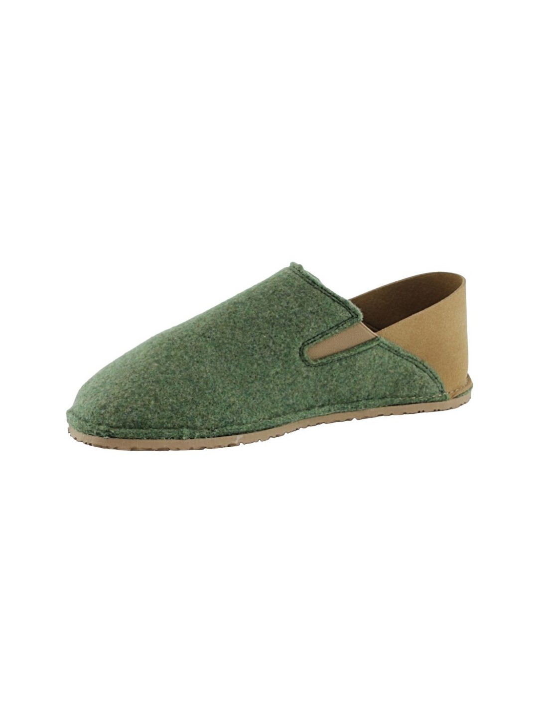 Zapatillas de estar por casa de la marca Froddo, modelo barefoot Slip-on Wooly de color verde con detalles marrones. Están hechas con materiales textiles de las mejores calidades. Son muy flexible, finas y cómodas.