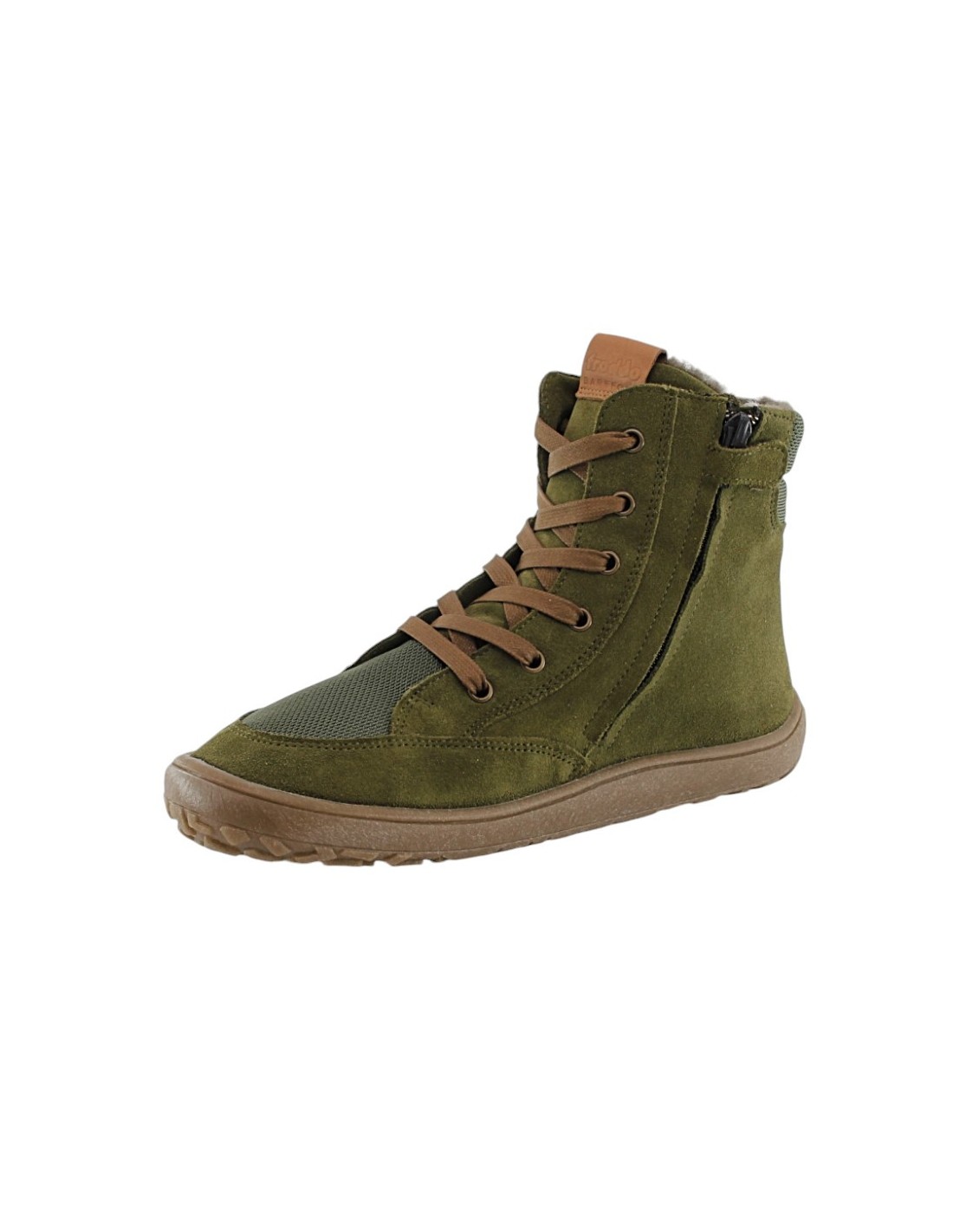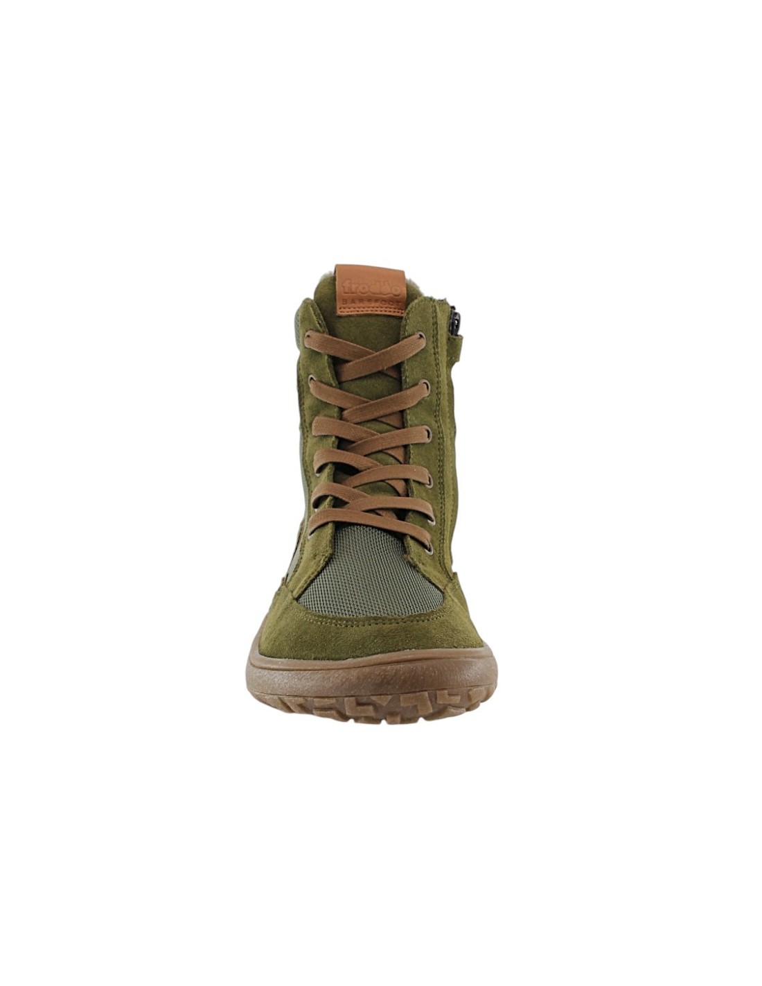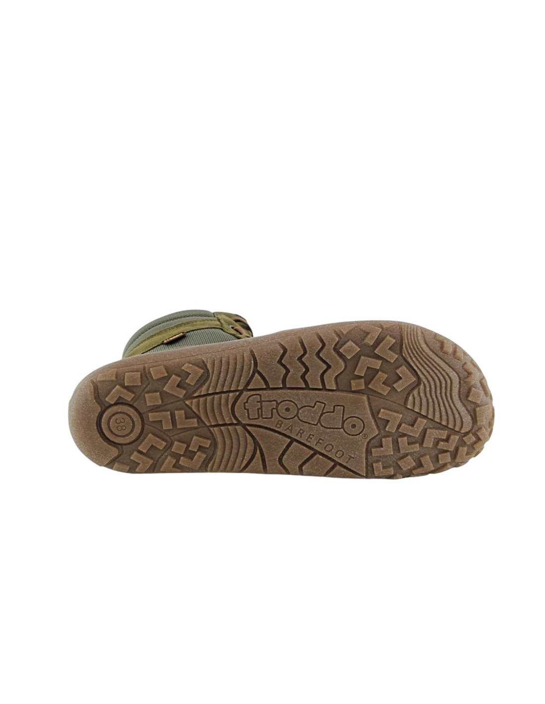 Botines barefoot de la marca Froddo, modelo Tex de color verde. Están hechos con materiales textiles y pieles impermeables de las mejores calidades. Su suela de goma es muy amplia, flexible y ligera, y imita la forma natural de los pies.