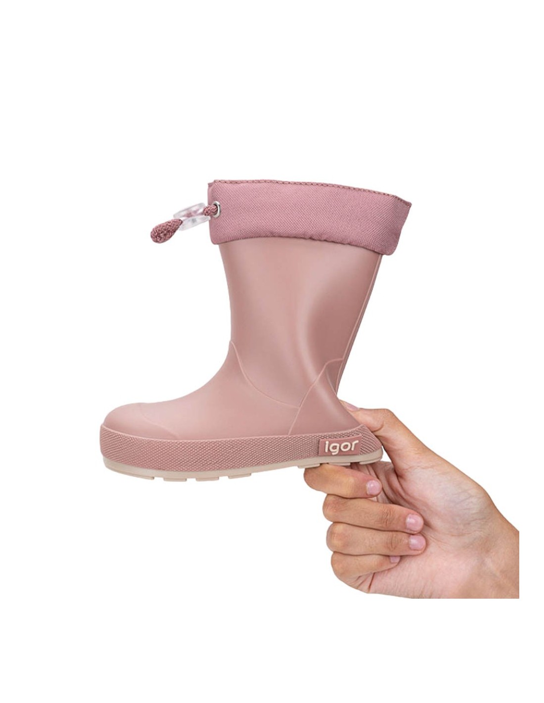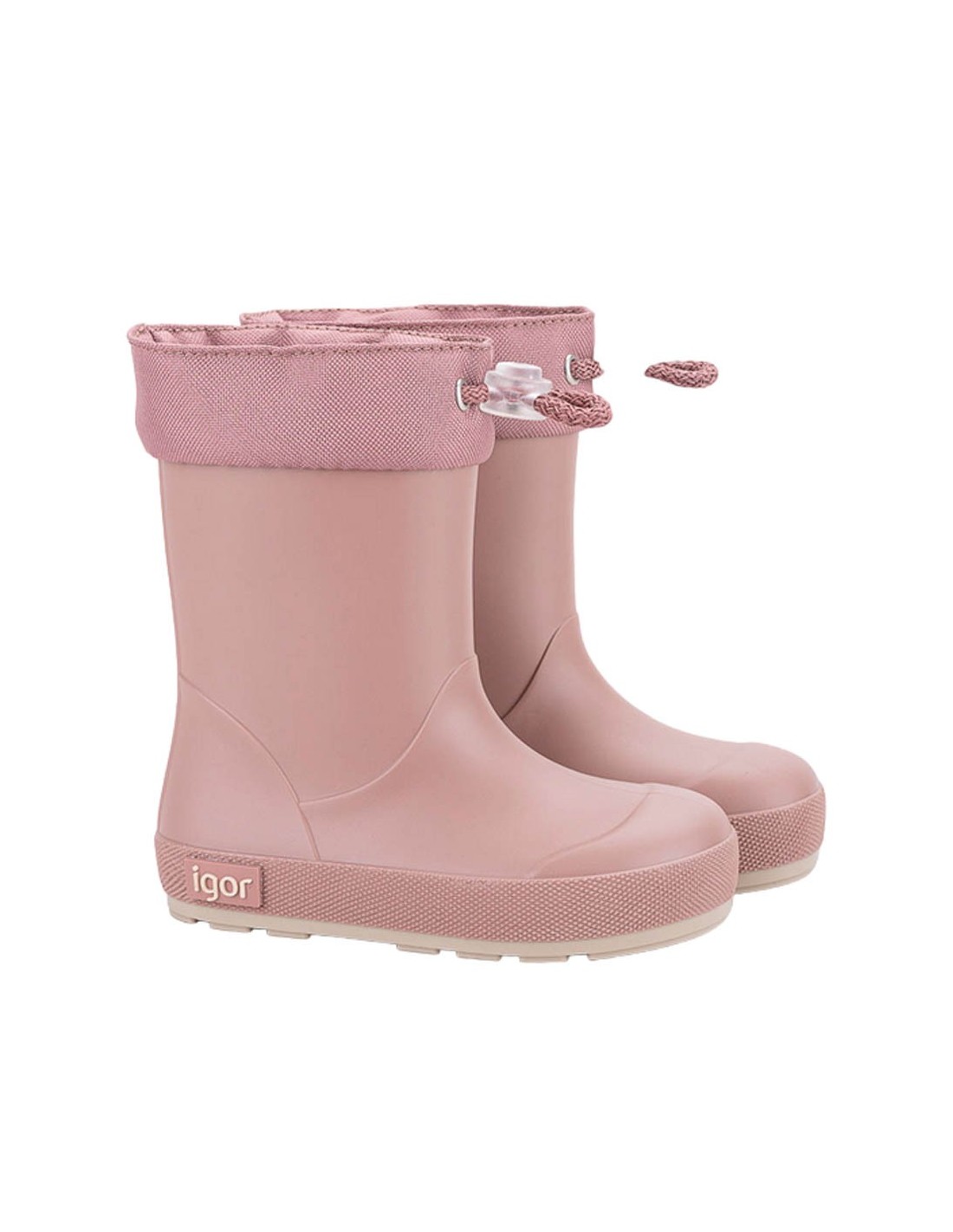 Botas de agua de la marca Igor, modelo Yogi Cuello de color rosa. Son muy fáciles de poner y quitar, y tienen un ajuste en la parte superior que evita que entre agua. Calzado respetuoso con el crecimiento y desarrollo de los pies.
