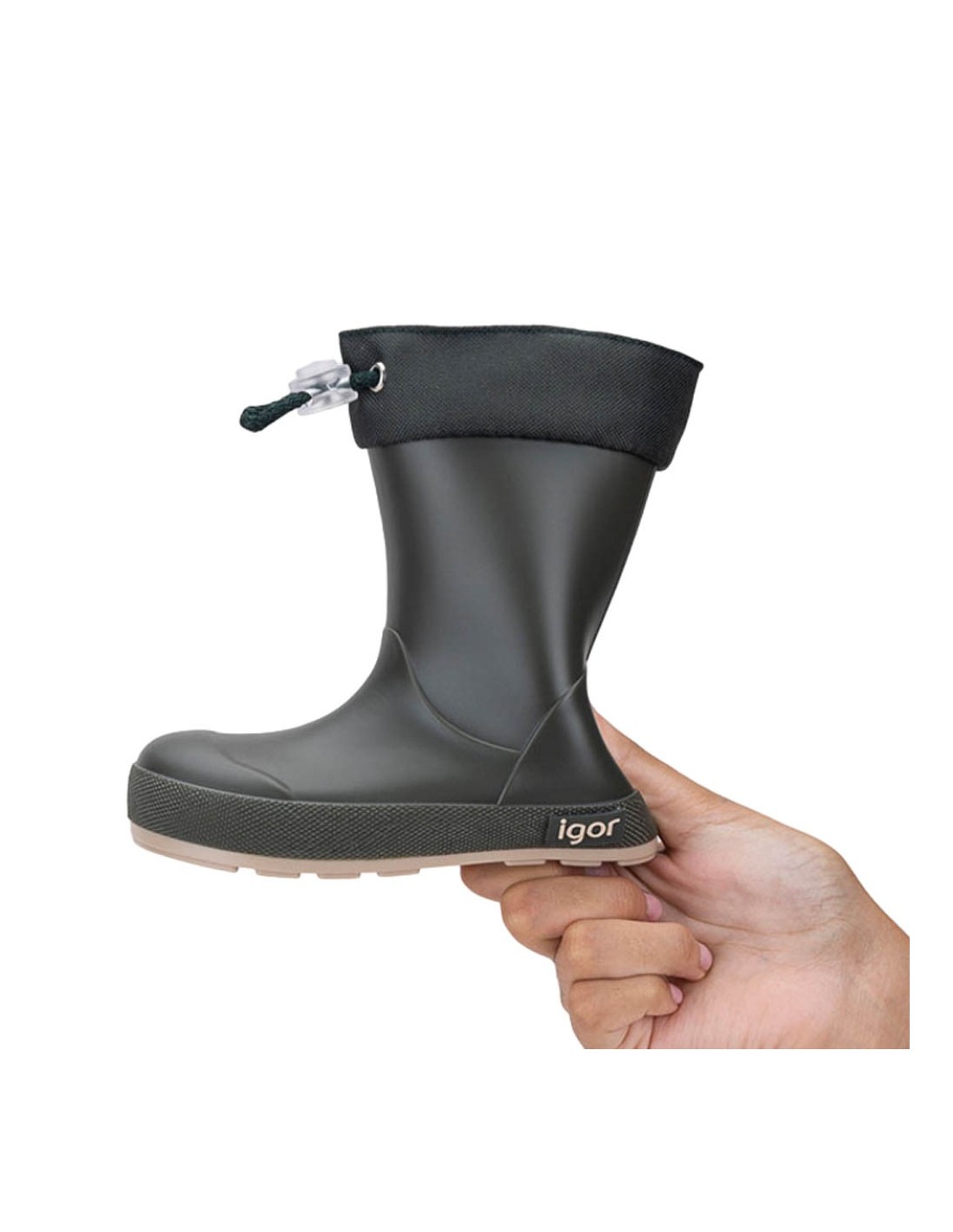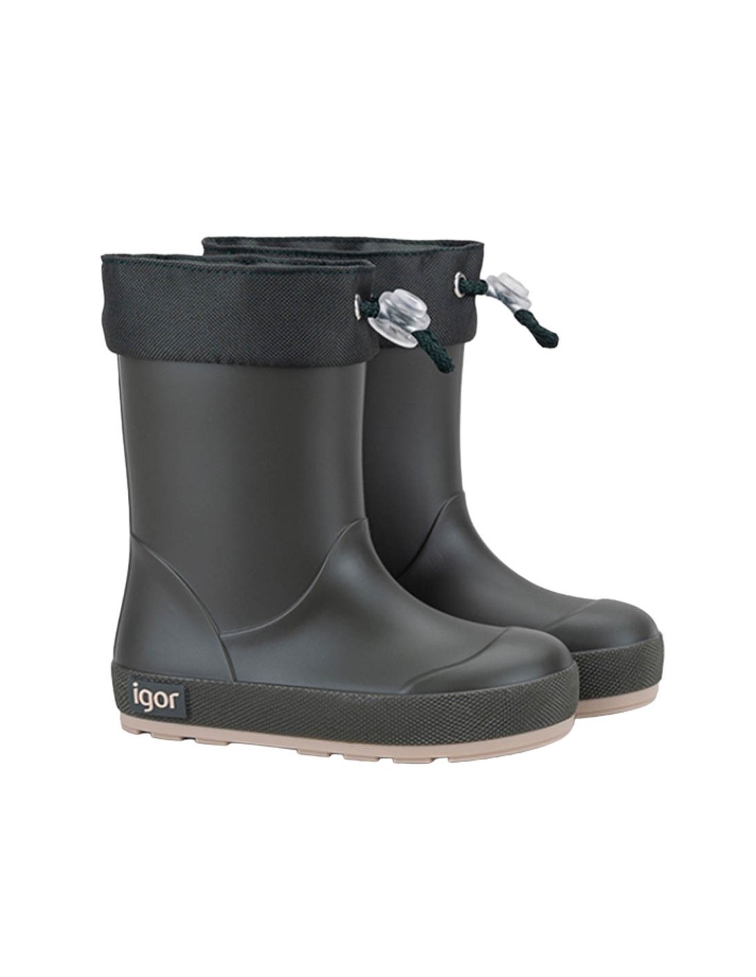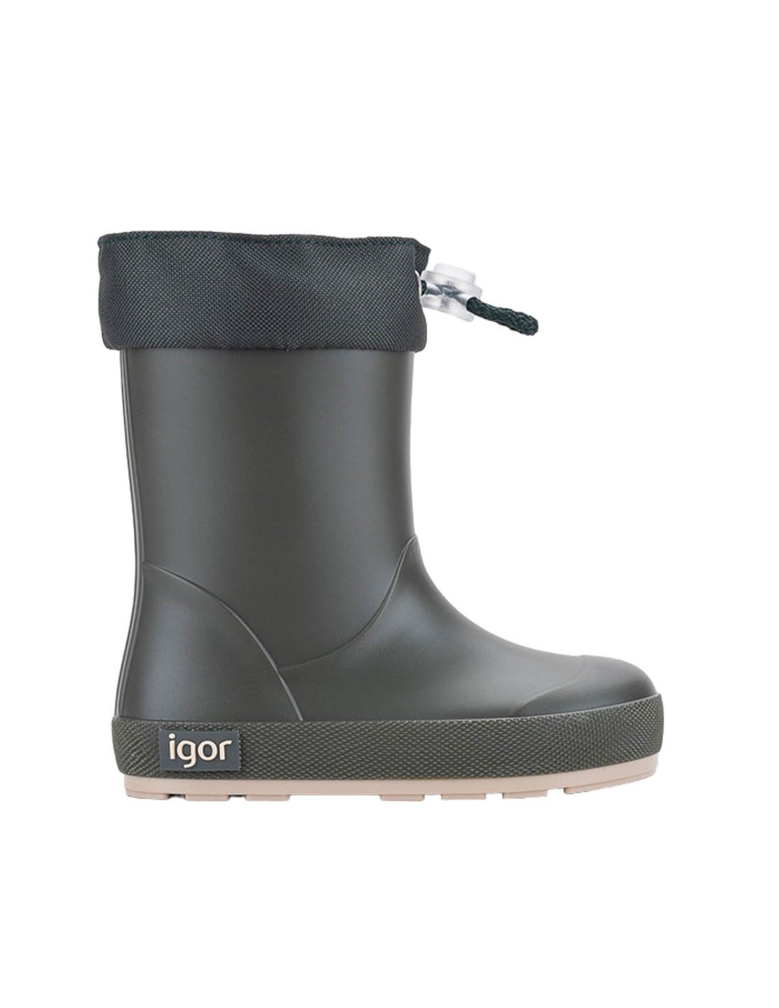 Botas de agua de la marca Igor, modelo Yogi de color verde kaki. Este calzado es respetuoso con el crecimiento y desarrollo natural de los pies. Es muy flexible, cómodo y fácil de poner y quitar.