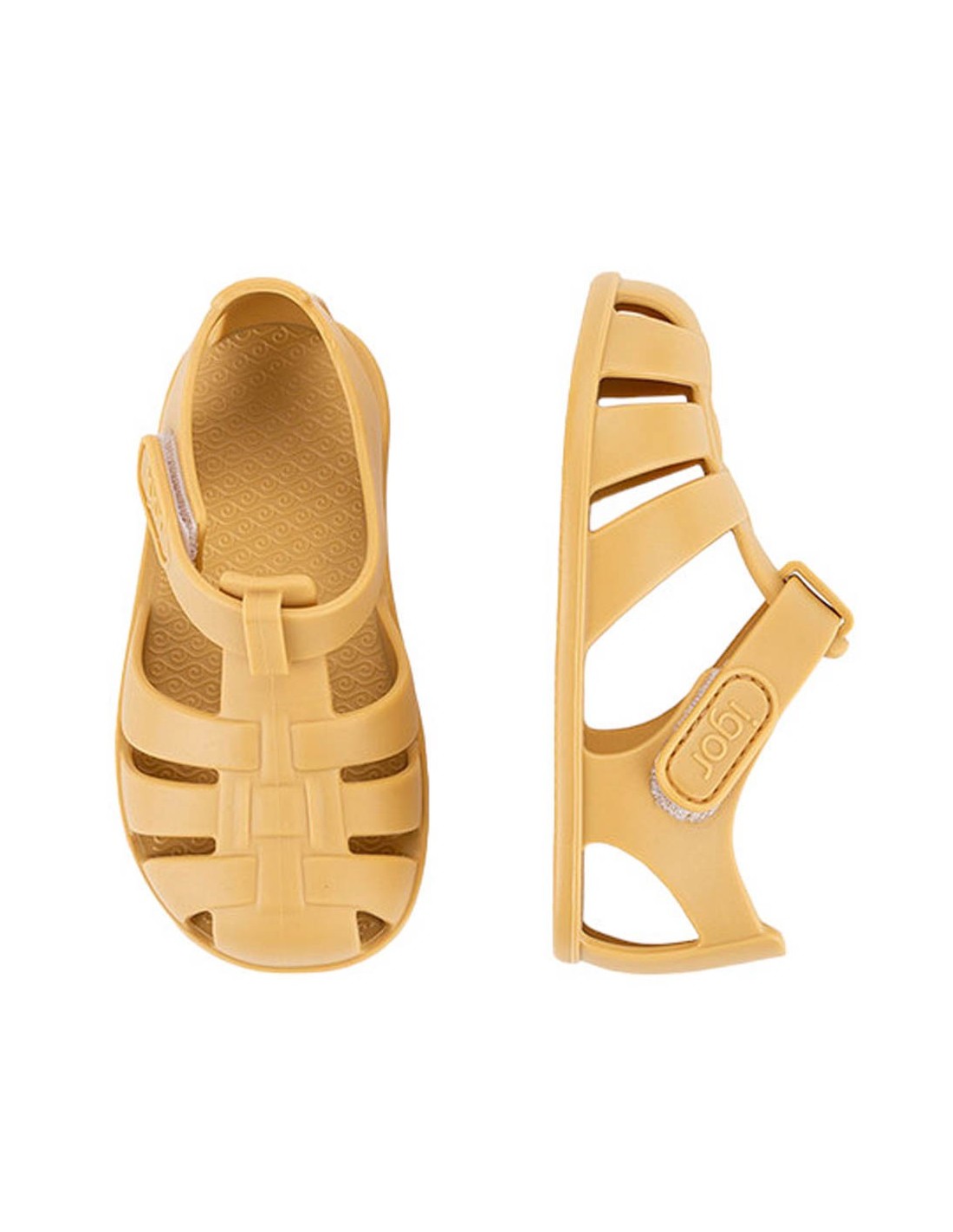 Cangrejeras respetuosas con el crecimiento natural de los pies. Calzado de la marca Igor, modelo Nemo de color amarillo Dijon. Tienen un cierre con velcro que permite un mejor ajuste a los pies. Estas sandalias de agua son muy cómodas y estilosas.