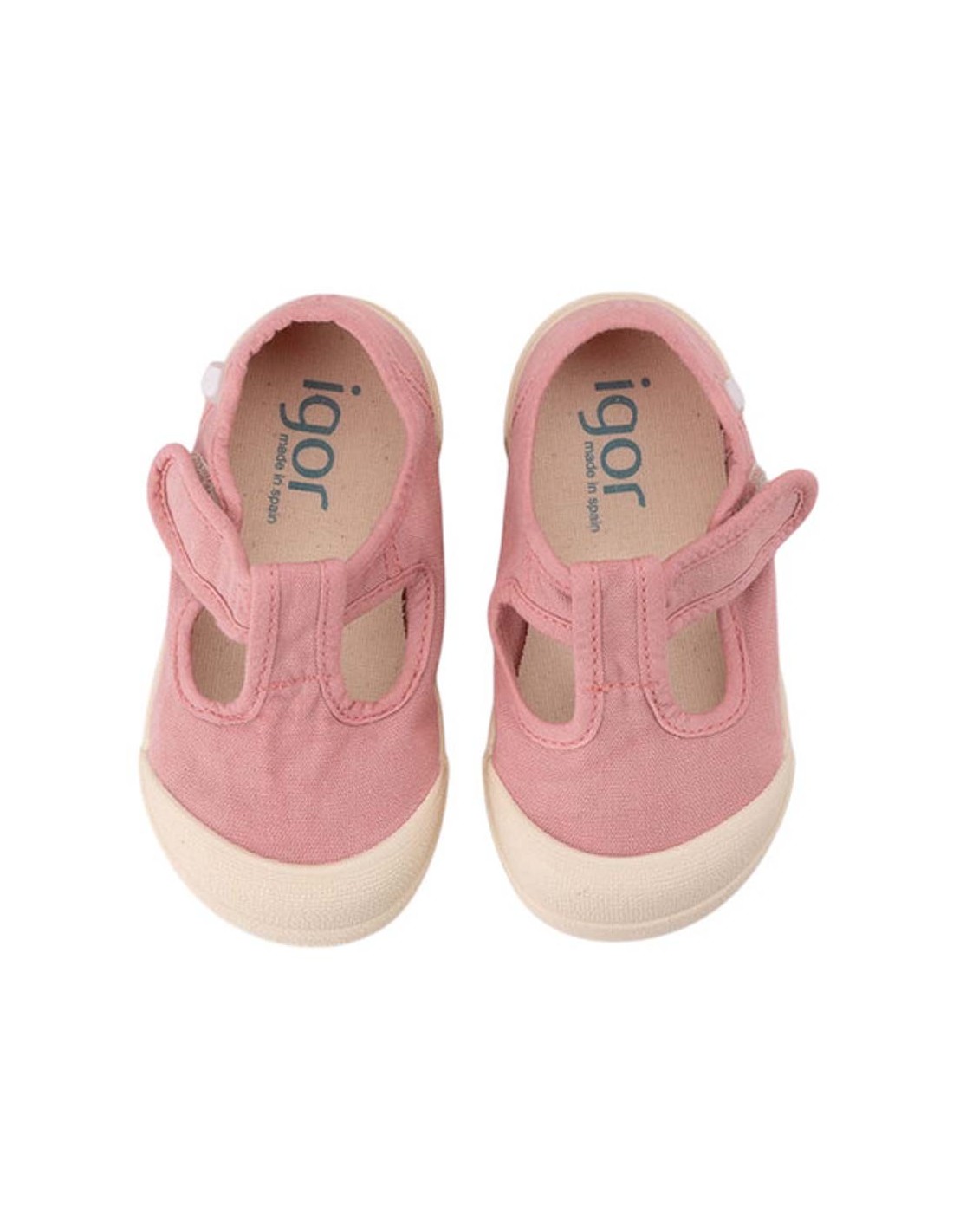 Calzado barefoot de lona de la marca Igor, modelo Pepito Nuevo de color rosa. Se ajustan perfectamente a los pies gracias a su cierre con velcro. Su suela de goma es muy amplia, plana y flexible y permite una gran libertad de movimiento.