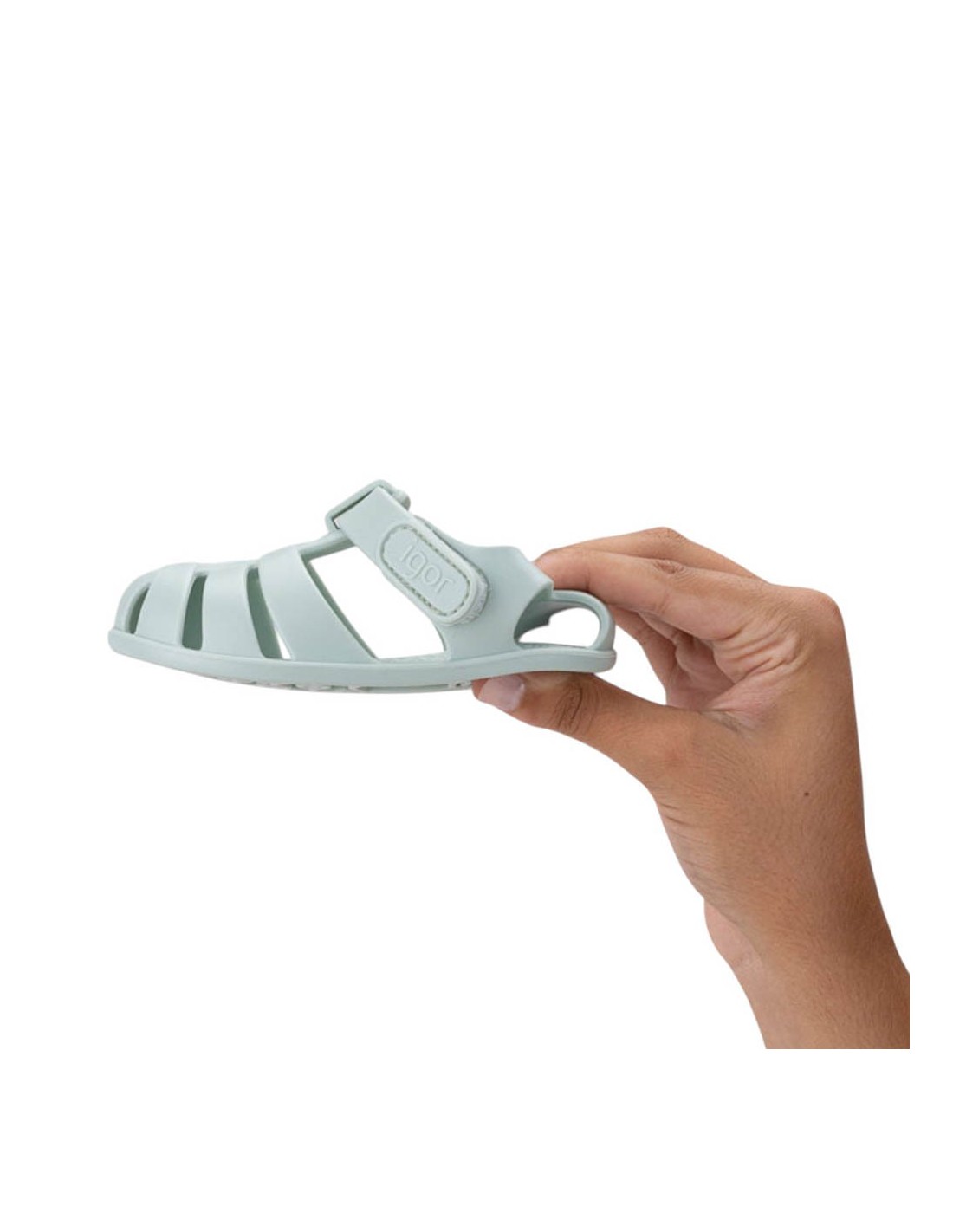 Cangrejeras respetuosas de la marca Igor, modelo Nemo de color verde Menta. Se ajustan a los pies gracias a su cierre con velcro. Están hechas con goma muy flexible y ligera que permite una gran libertad de movimiento.