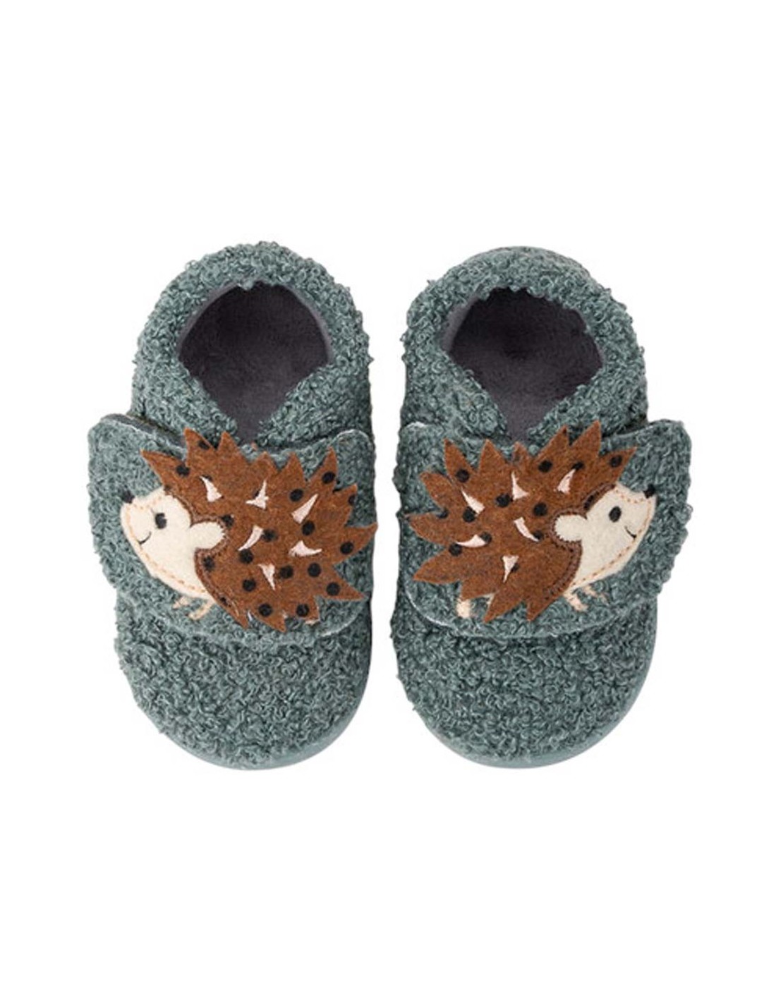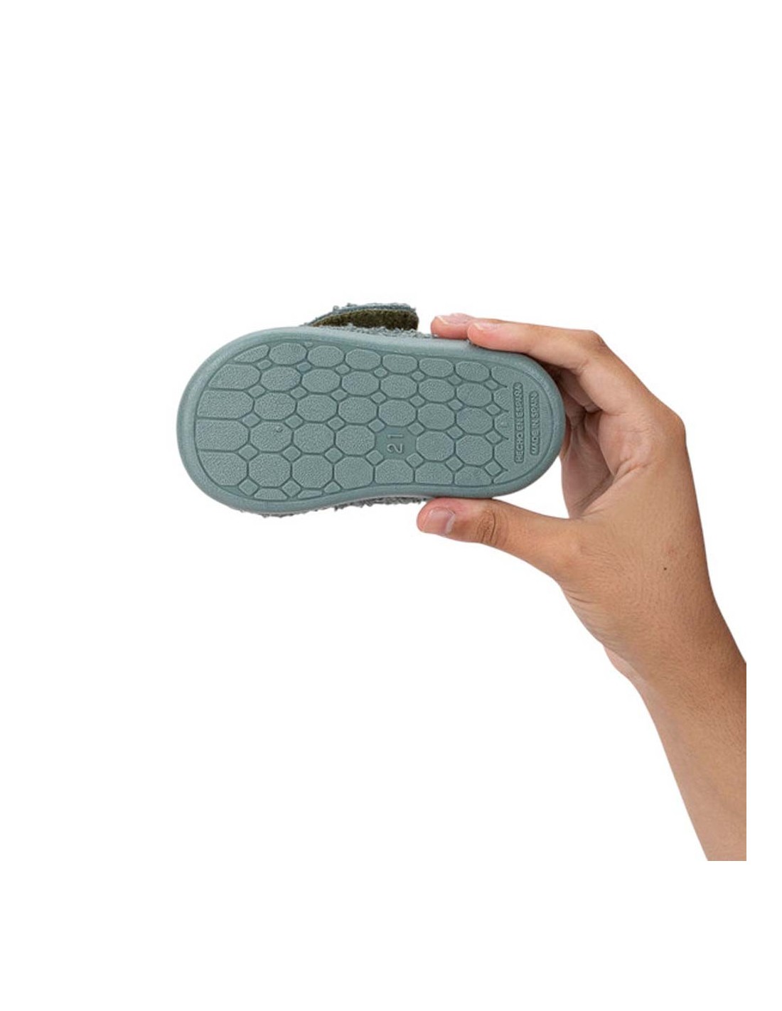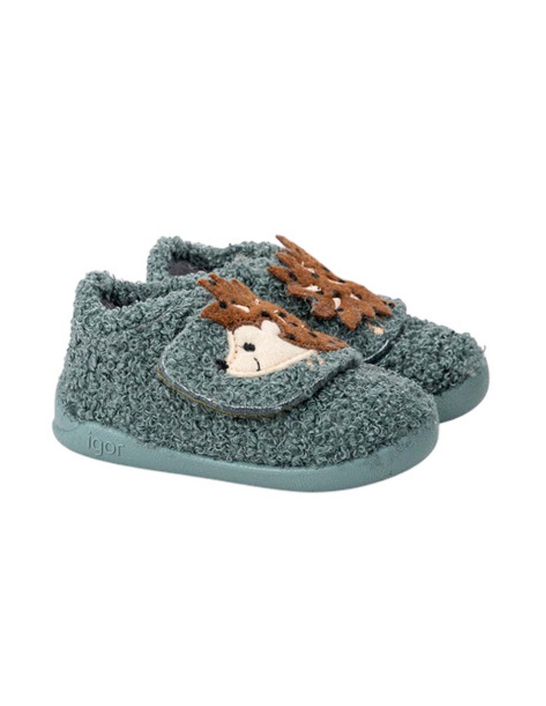 Zapatillas de estar por casa de la marca Igor, modelo Erizo en color verde. Este calzado es respetuoso con el crecimiento y desarrollo natural de los pies. Se ajustan a los pies gracias a su cierre con velcro.