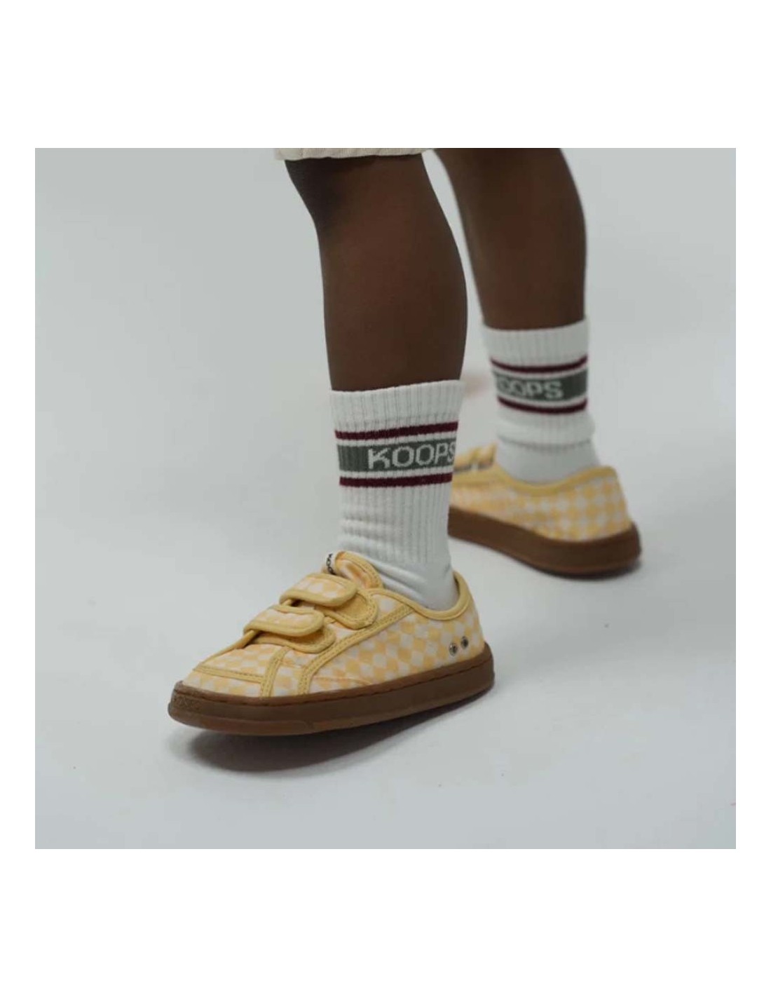 Pack de 2 calcetines de la marca Koops, modelos de color blanco con líneas multicolores.