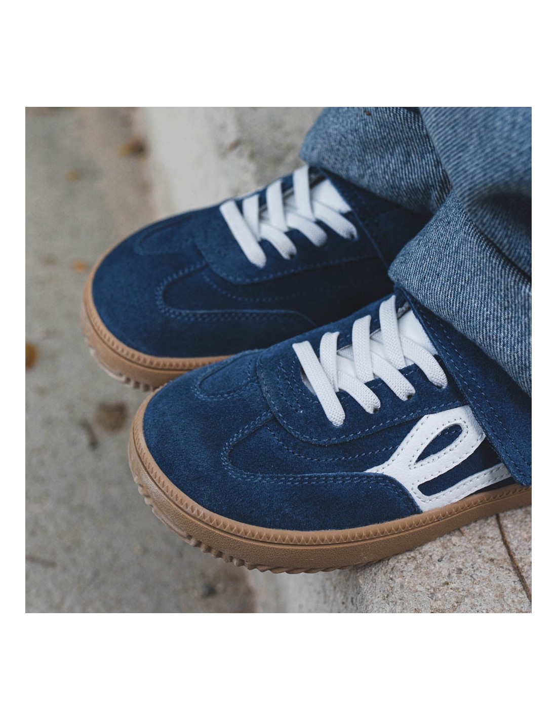 Zapatos barefoot de la marca Lejan, modelo One de color azúl. Son muy fáciles de poner y quitar gracias a su cierre con velcro y cordones. Este calzado es respetuoso con el crecimiento y desarrollo natural de los pies.