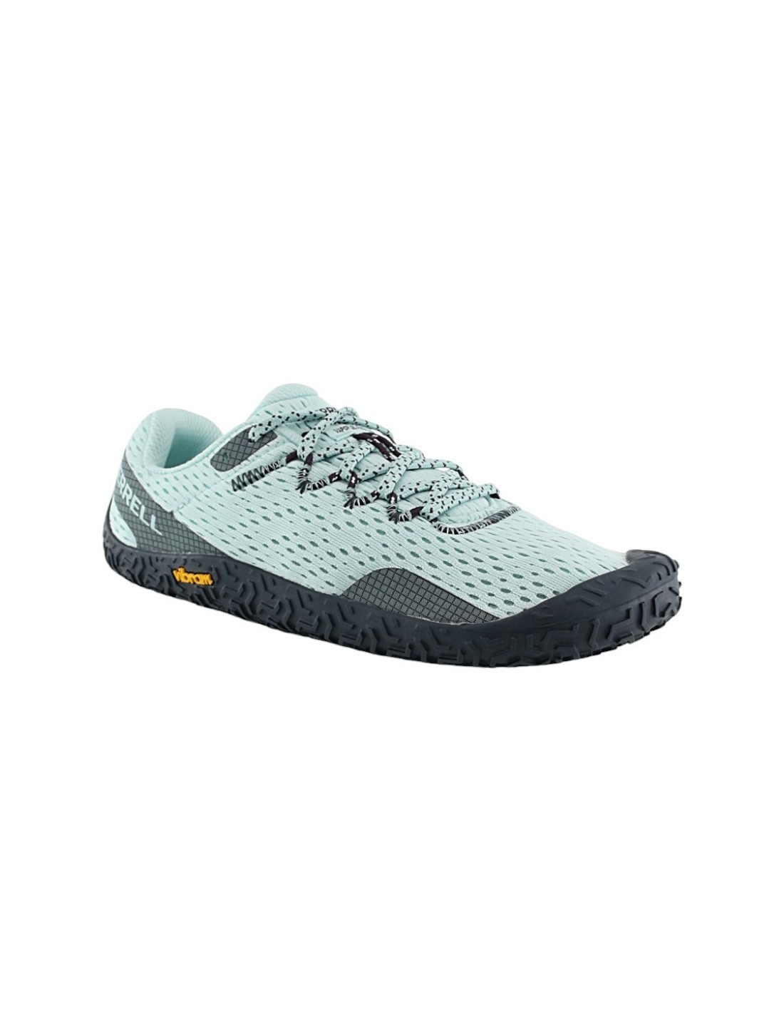 Zapatillas deportivas minimalistas de la marca Merrell, modelo Vapor Glove 6 de color azúl Celeste. Están hechas con materiales textiles muy flexibles.
