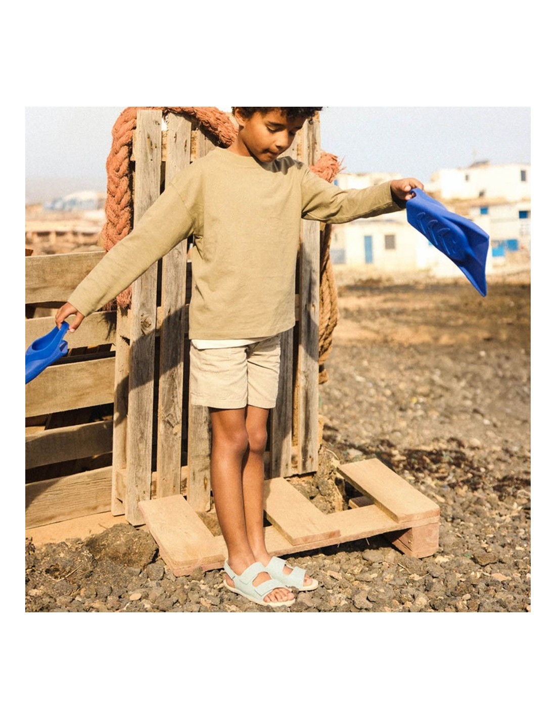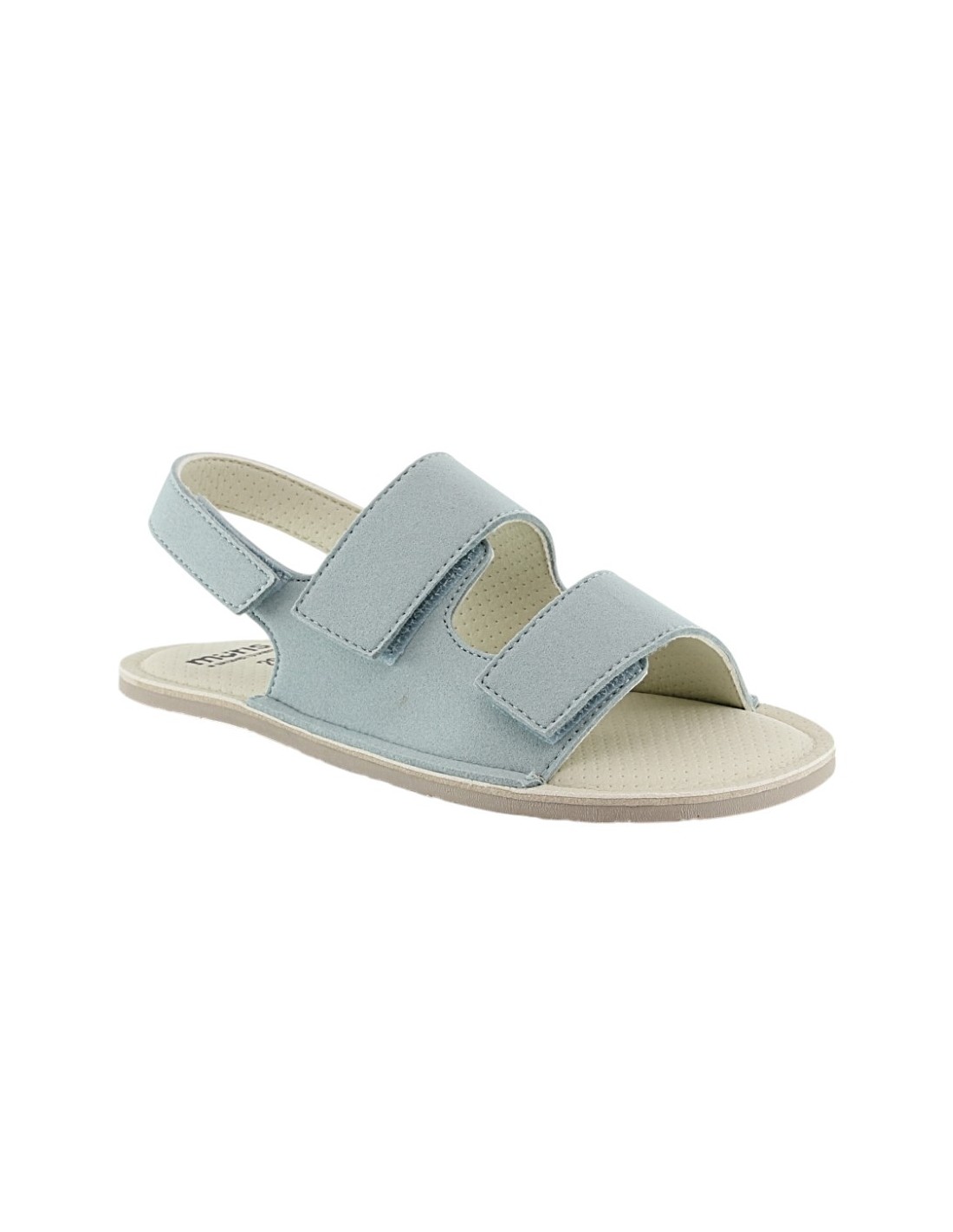 Sandalias barefoot de la marca Muris, modelo Rio Dusty Sky de color azul. Se ajustan perfectamente a los pies gracias a sus cierres con velcro. Su suela de goma es muy amplia, plana y flexible y permite una gran libertad de movimiento.