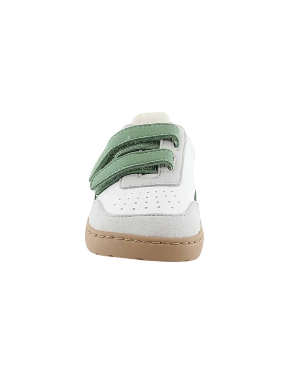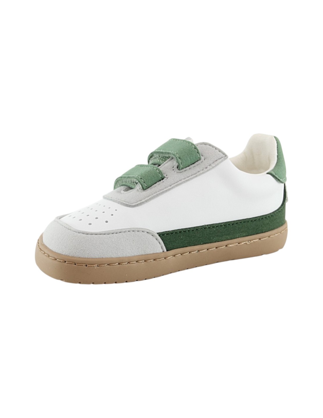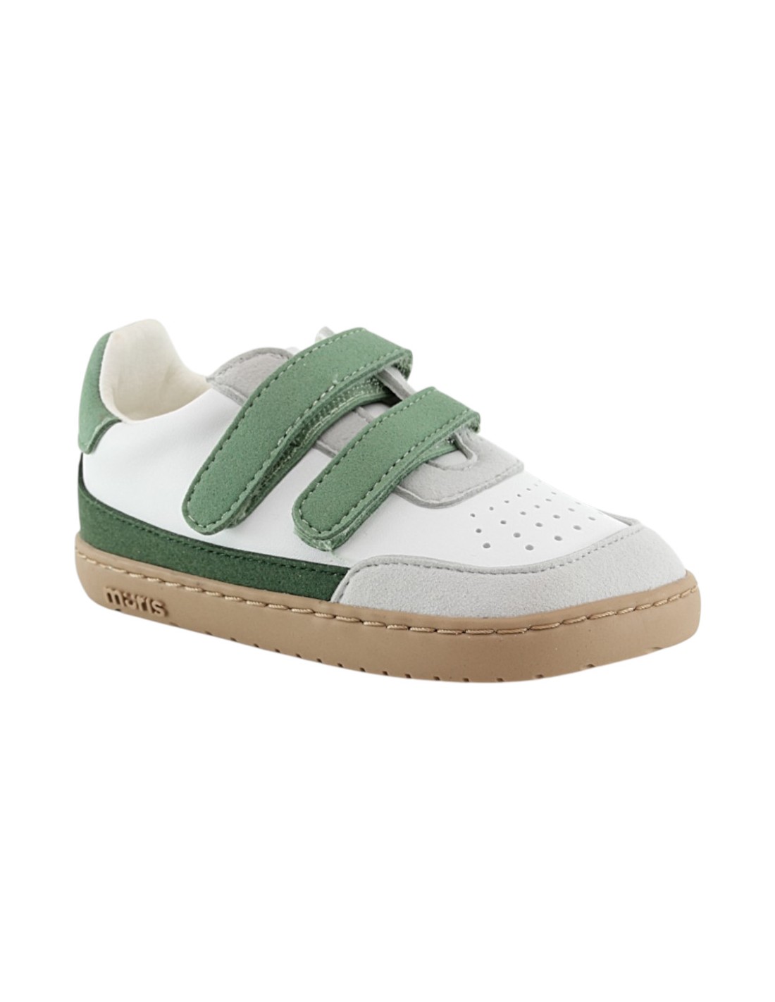 Zapatos veganos barefoot de la marca Muris, modelo Petra Mini Forest de color verde. Se ajustan a los pies gracias a su doble cierre con velcro. Su suela de goma es muy amplia, plana y flexible y permite una gran libertad de movimiento.