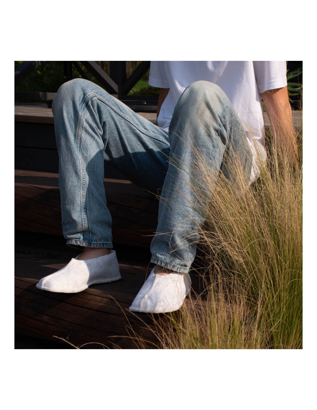 Zapatillas de casa barefoot OmaKing fieltro cerrado Blanco