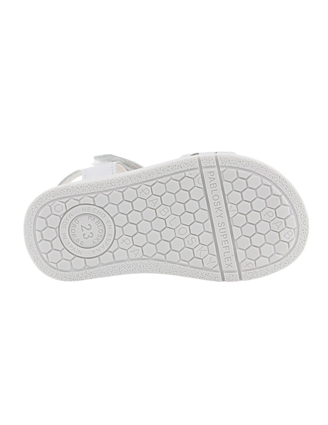 Sandalias barefoot de la marca Pablosky, modelo 054000 de color blanco. Están hechas con piel y materiales intech de las mejores calidades. Tienen una suela de goma muy amplia, plana y flexible que permite una gran libertad de movimiento.