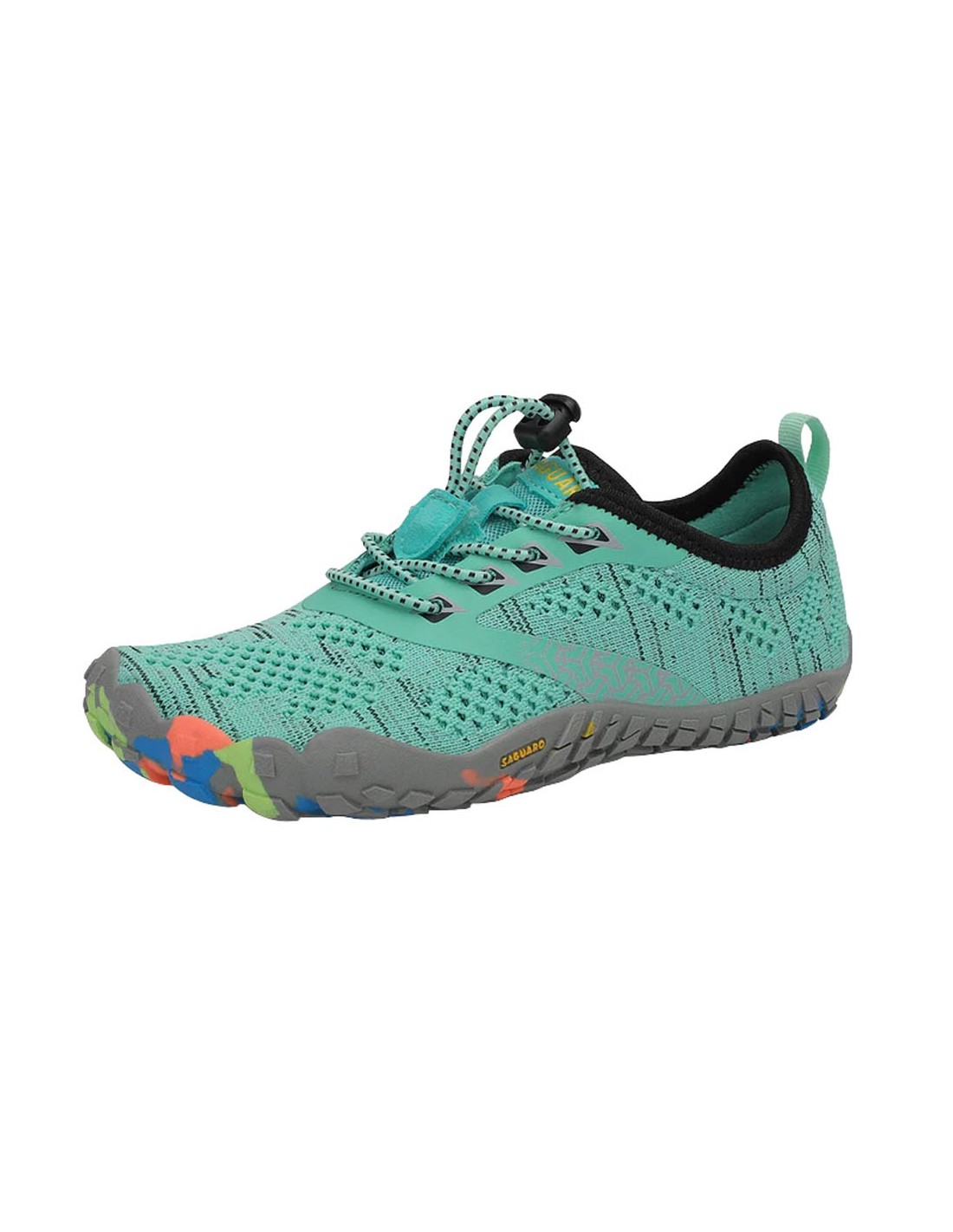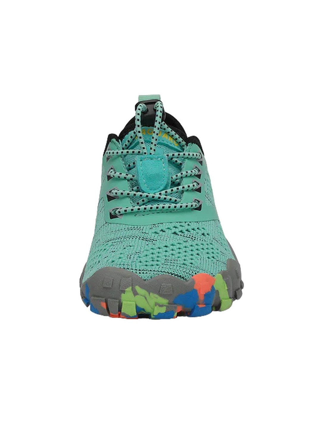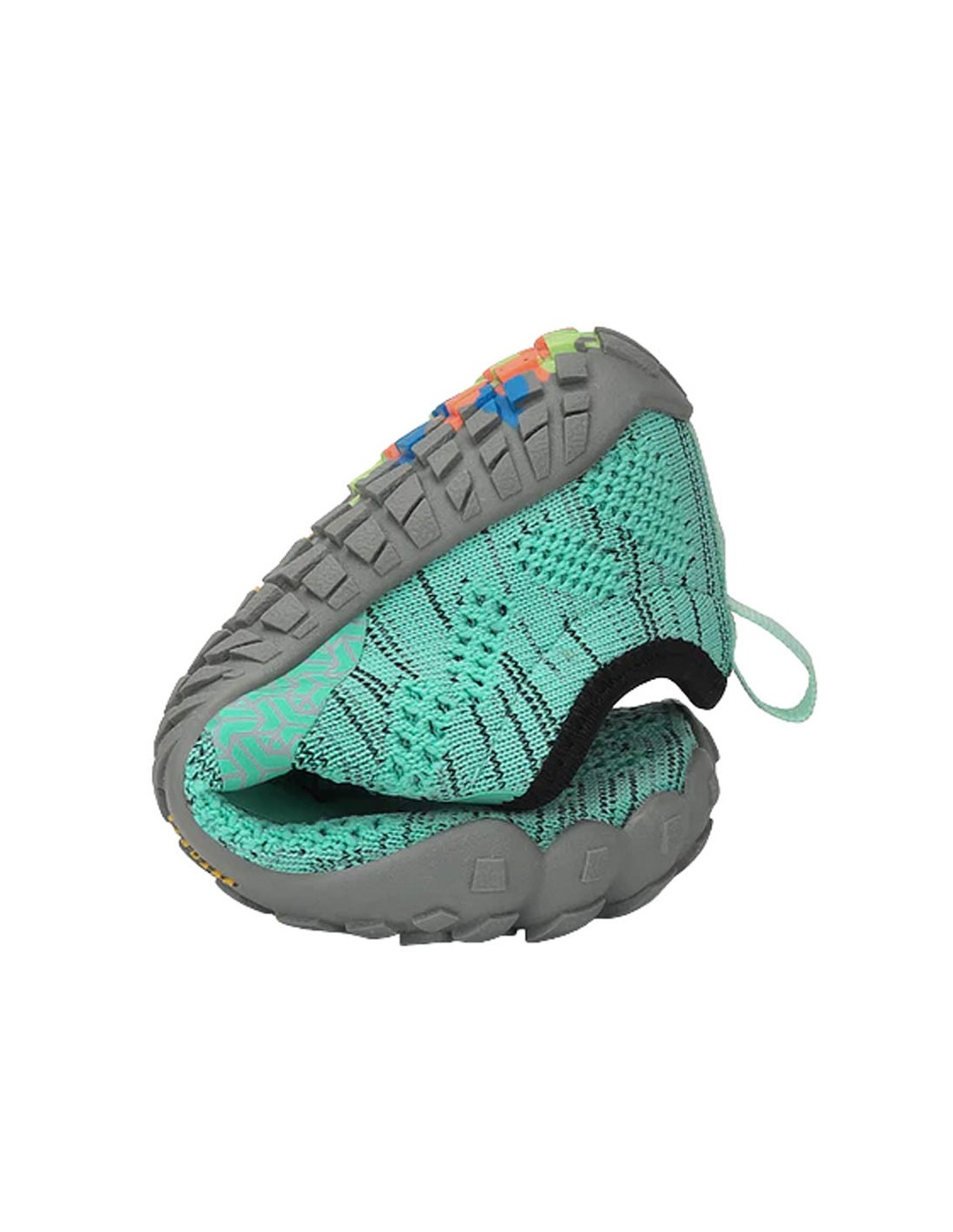 Zapatillas barefoot de la marca Saguaro, modelo Chaser Smart de color turquesa con detalles multicolor. Son muy modernas, estilosas y, aunque busquen la sensación de ir descalzos, muy protectoras.