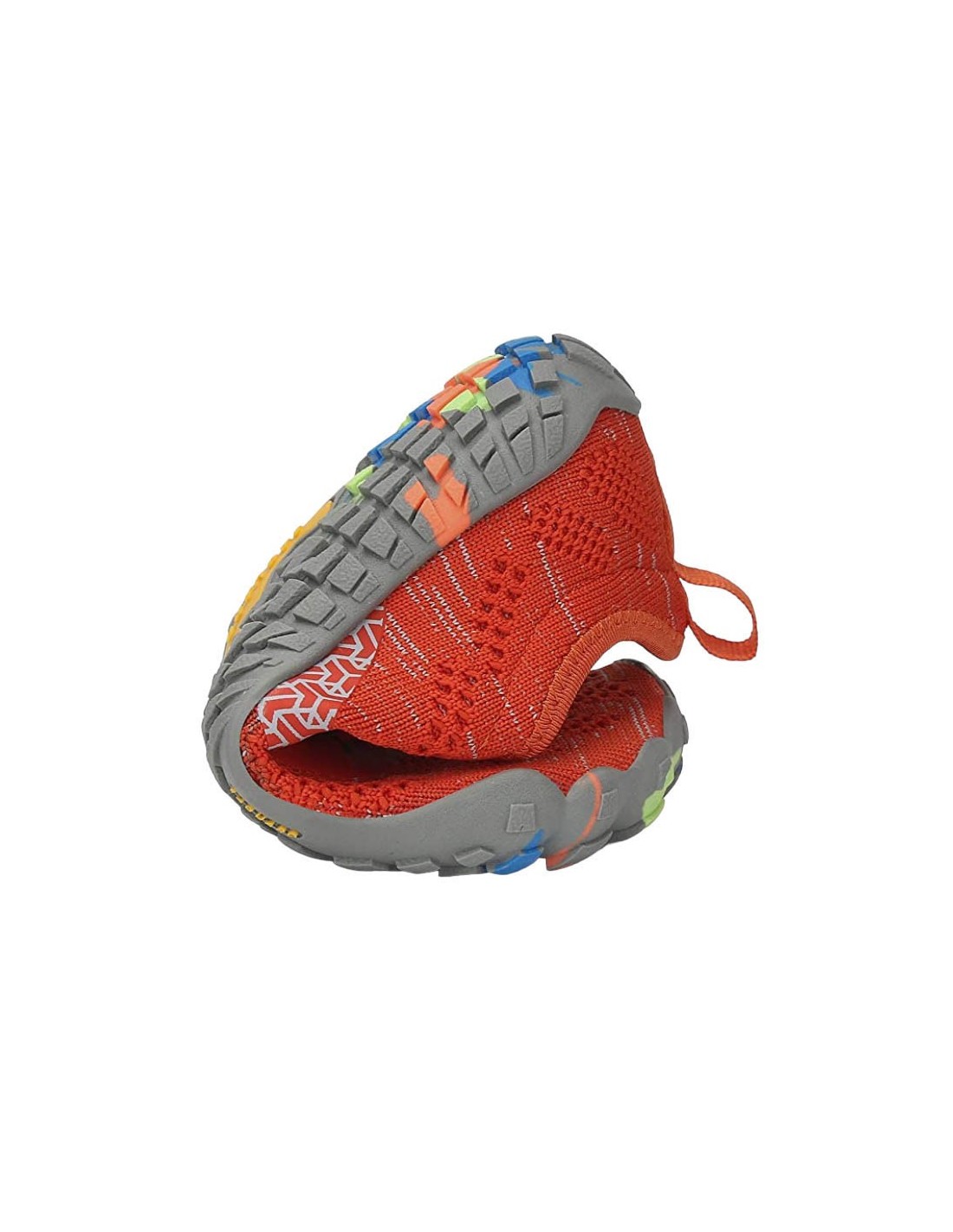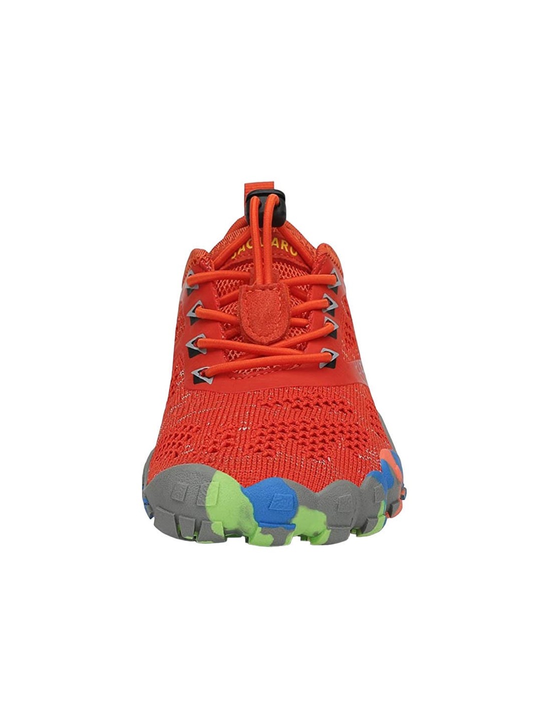 Zapatillas deportivas de la marca Saguaro, modelo Chaser Smart con efecto barefoot. Este modelo de color naranja es muy estiloso y llamativo. Son muy flexibles, resistentes y protectoras. Están hechas de materiales textiles, menos su suela de goma.