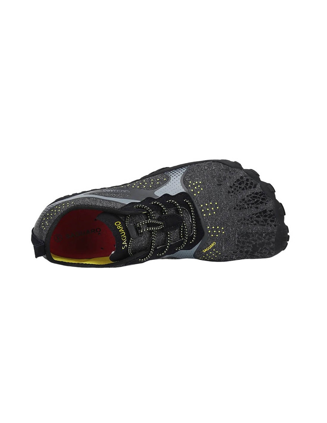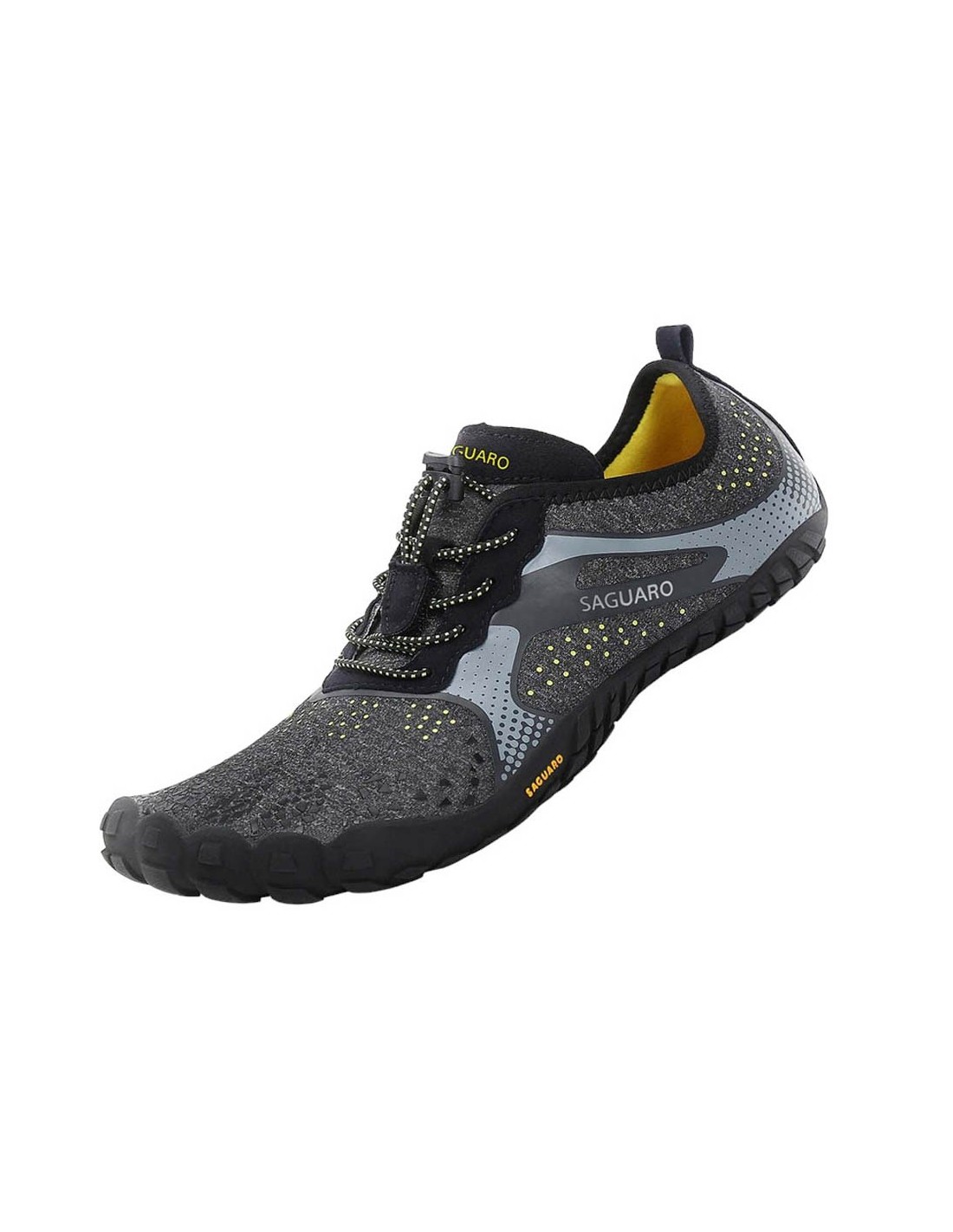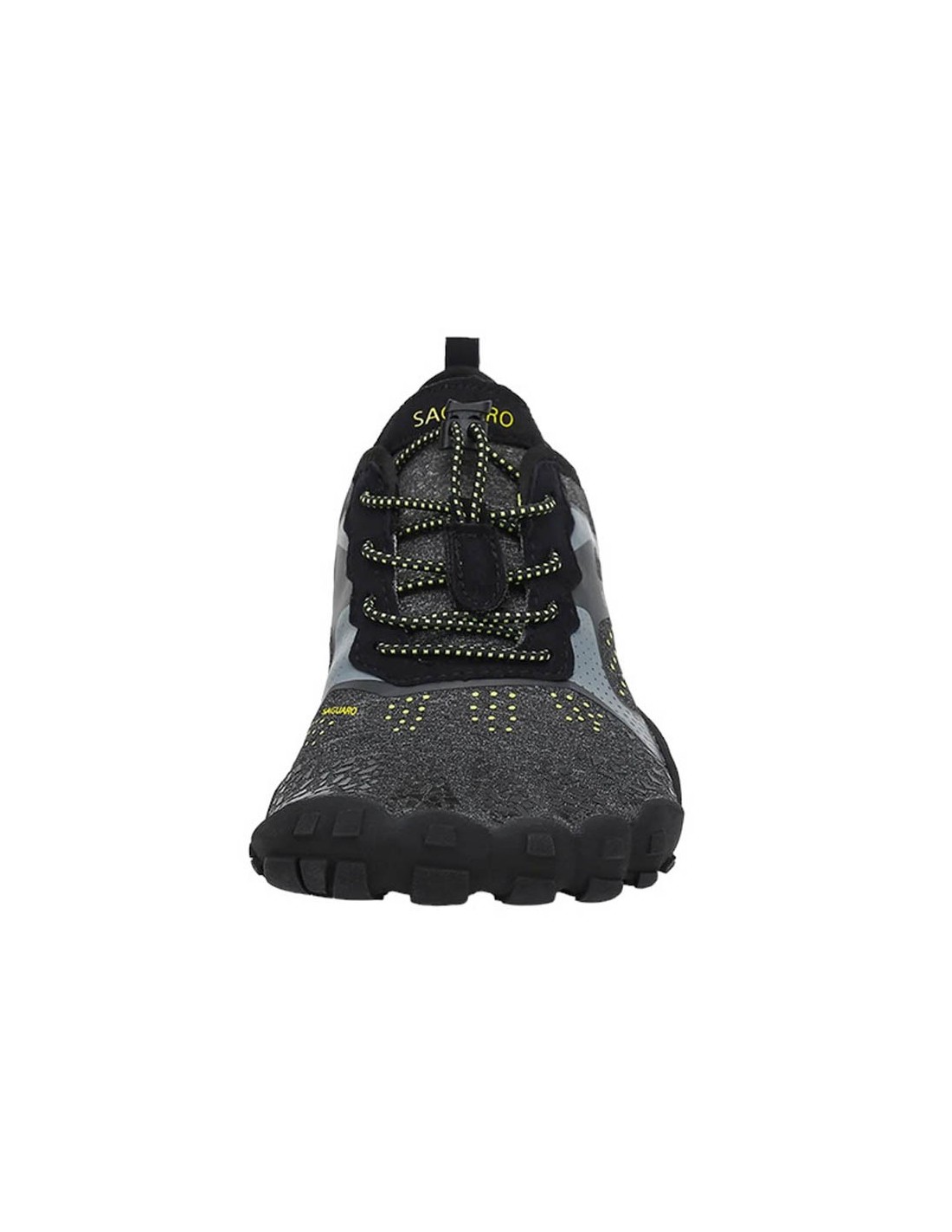 Zapatillas deportivas de la marca Saguaro, modelo Fast I de color gris. Son muy fáciles de poner y quitar gracias a su cierre con cordones elásticos. Su suela de goma es muy ligera y flexible, perfecta para cualquier terreno.