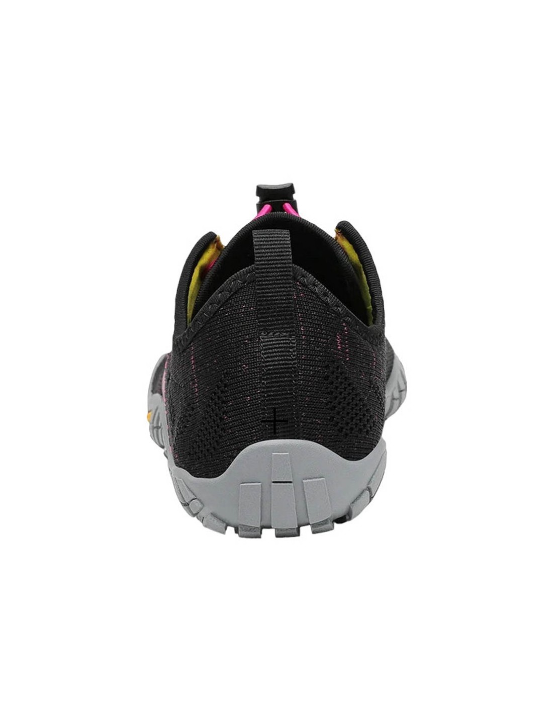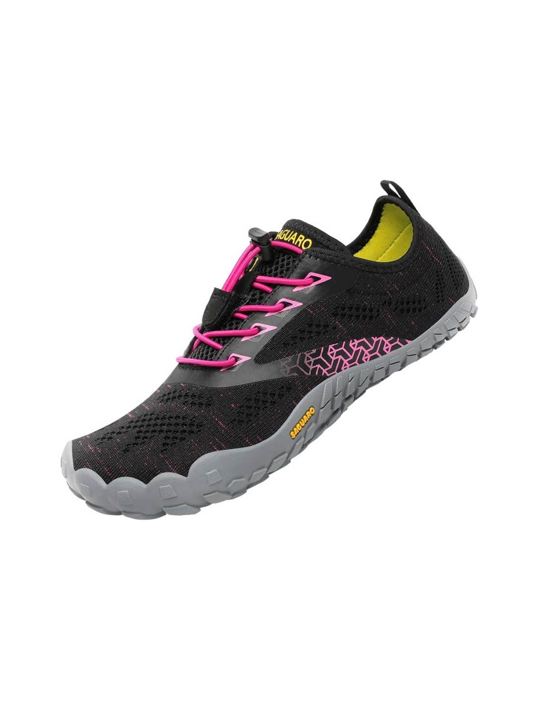 Zapatillas barefoot de la marca Saguaro, modelo Chaser Smart de color negro con detalles multicolor. Son muy modernas, estilosas y, aunque busquen la sensación de ir descalzos, muy protectoras.