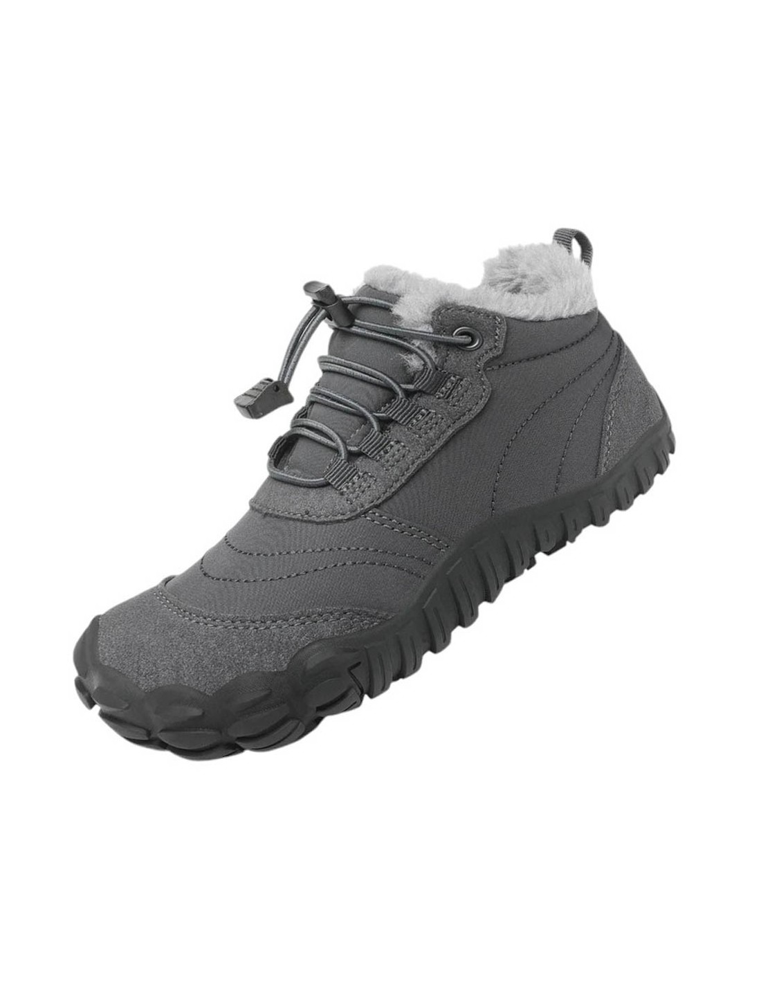 Botines barefoot de la marca Saguaro, modelo Will I con borreguito de color gris. Su suela de goma es muy flexible, amplia y plana y permite una gran libertad de movimiento.Están hechos con materiales textiles y sintéticos de las mejores calidades.