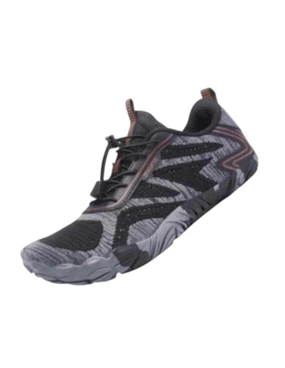 Zapatillas barefoot de la marca Saguaro, modelo Active de color negro con detalles grises. Su suela de goma es muy amplia, plana y flexible y permite una gran libertad de movimiento. Calzado cómodo y estiloso, perfecto para un look casual.