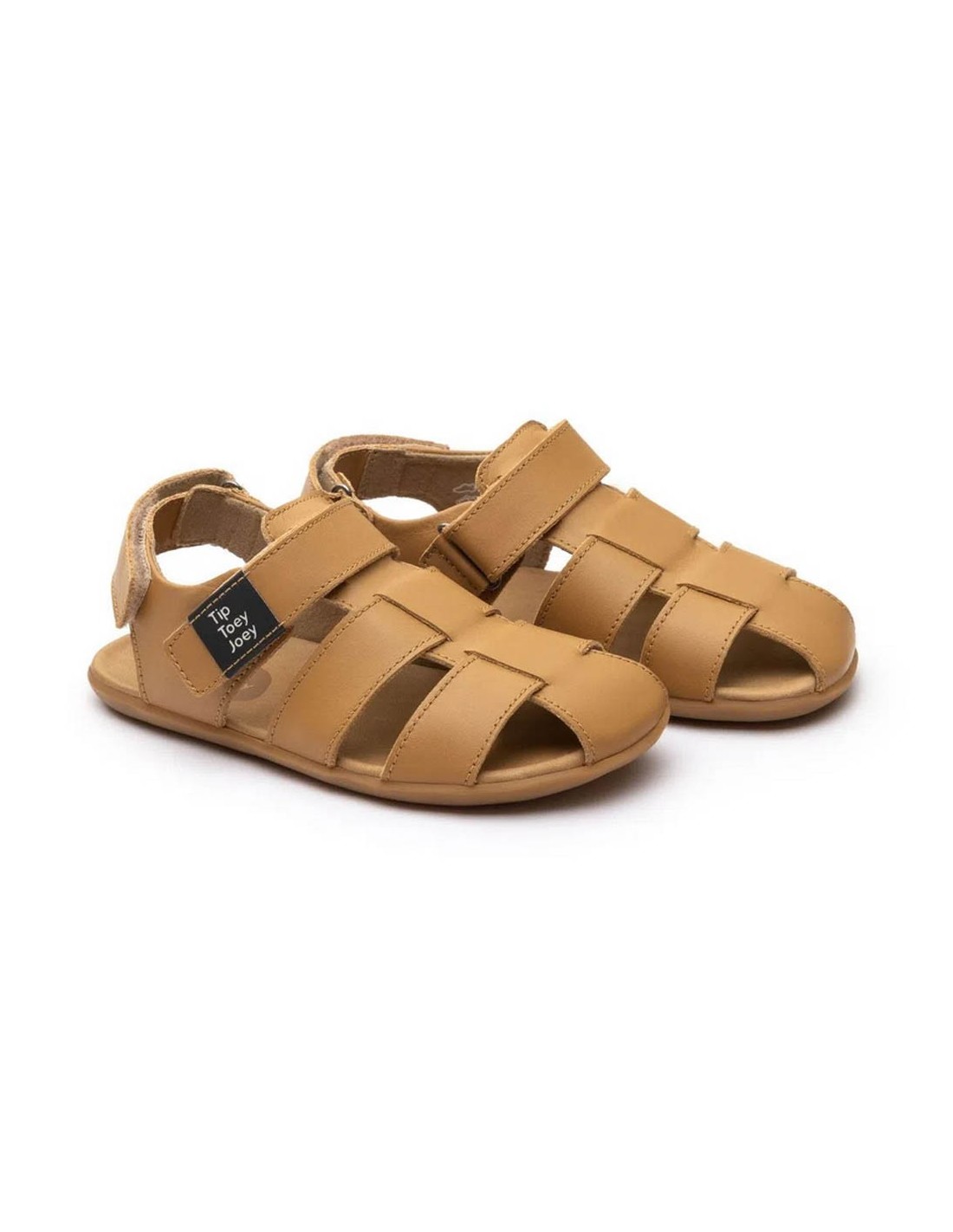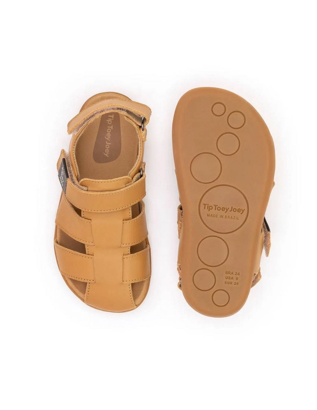 Sandalias respetuosas de la marca Tip Toey Joey, modelo Sand de color camel. Son ligeras, cómodas y flexibles. Su suela aporta la sensación de ir descalzo, para que los pies se acostumbren a diferentes terrenos.
