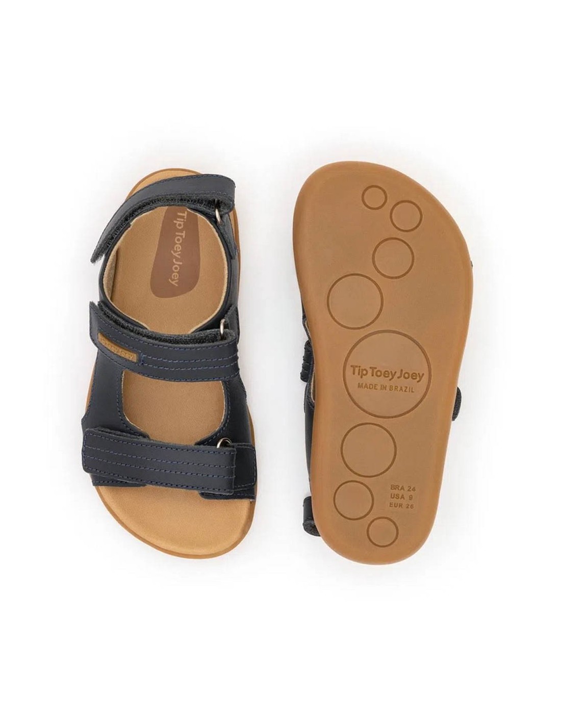 Sandalias barefoot de la marca Tip Toey Joey, modelo Explorer de color azúl oscuro. Son muy cómodas, ligeras y flexibles. Se adptan perfectamente a la forma de los pies gracias a su doble cierre con velcro.