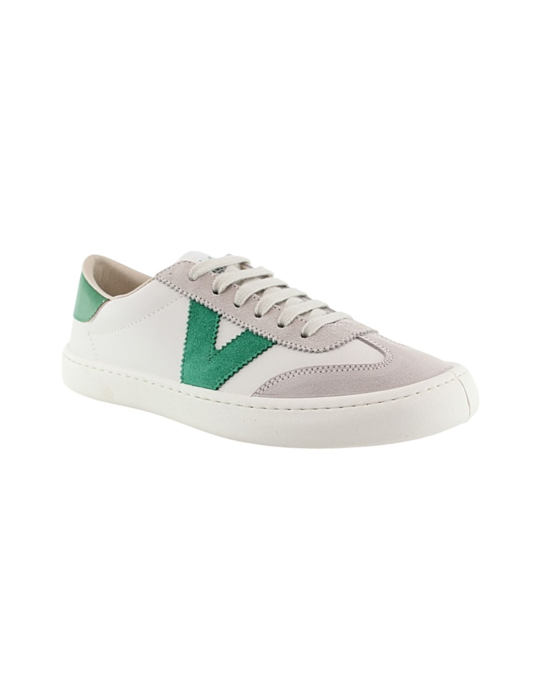 Calzado barefoot de la marca Victoria, modelo Olmo de color verde. Está hecho con piel, microfibra y materiales textiles de las mejores calidades y tiene una suela de goma muy amplia y plana que permite una gran libertad de moviminto.