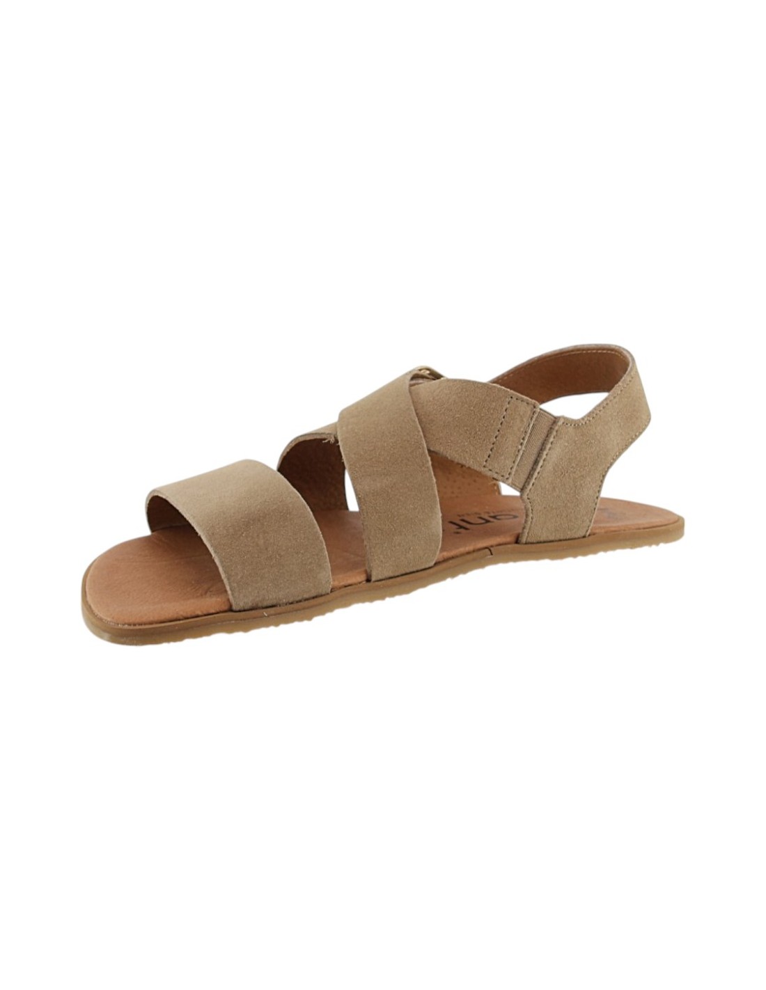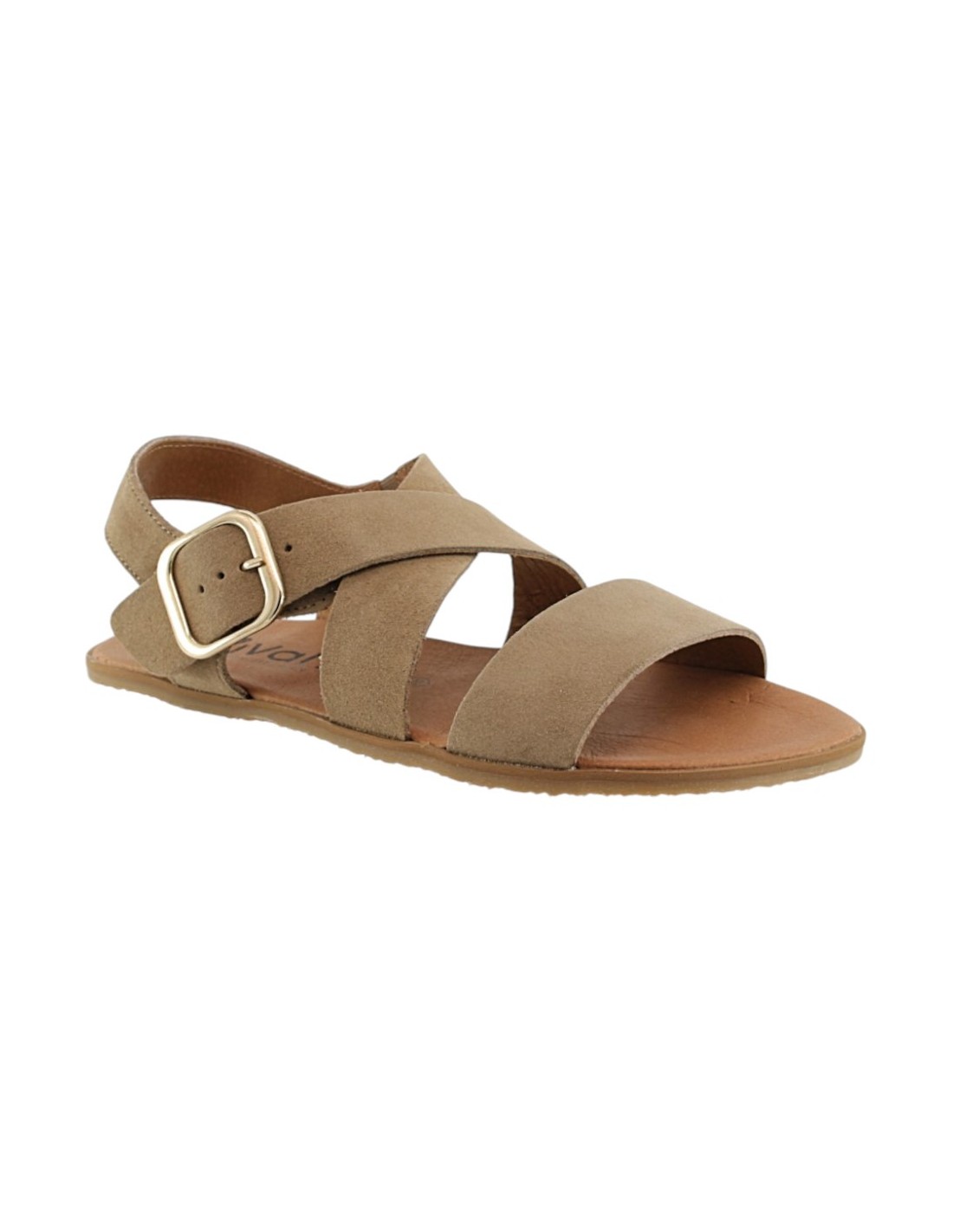 Sandalias barefoot de la marca Vivant, modelo 9100 Serraje de color beige Camello. Están hechas con pieles de las mejores calidades y tienen una suela de goma muy amplia, plana y flexible que permite una gran libertad de movimiento.