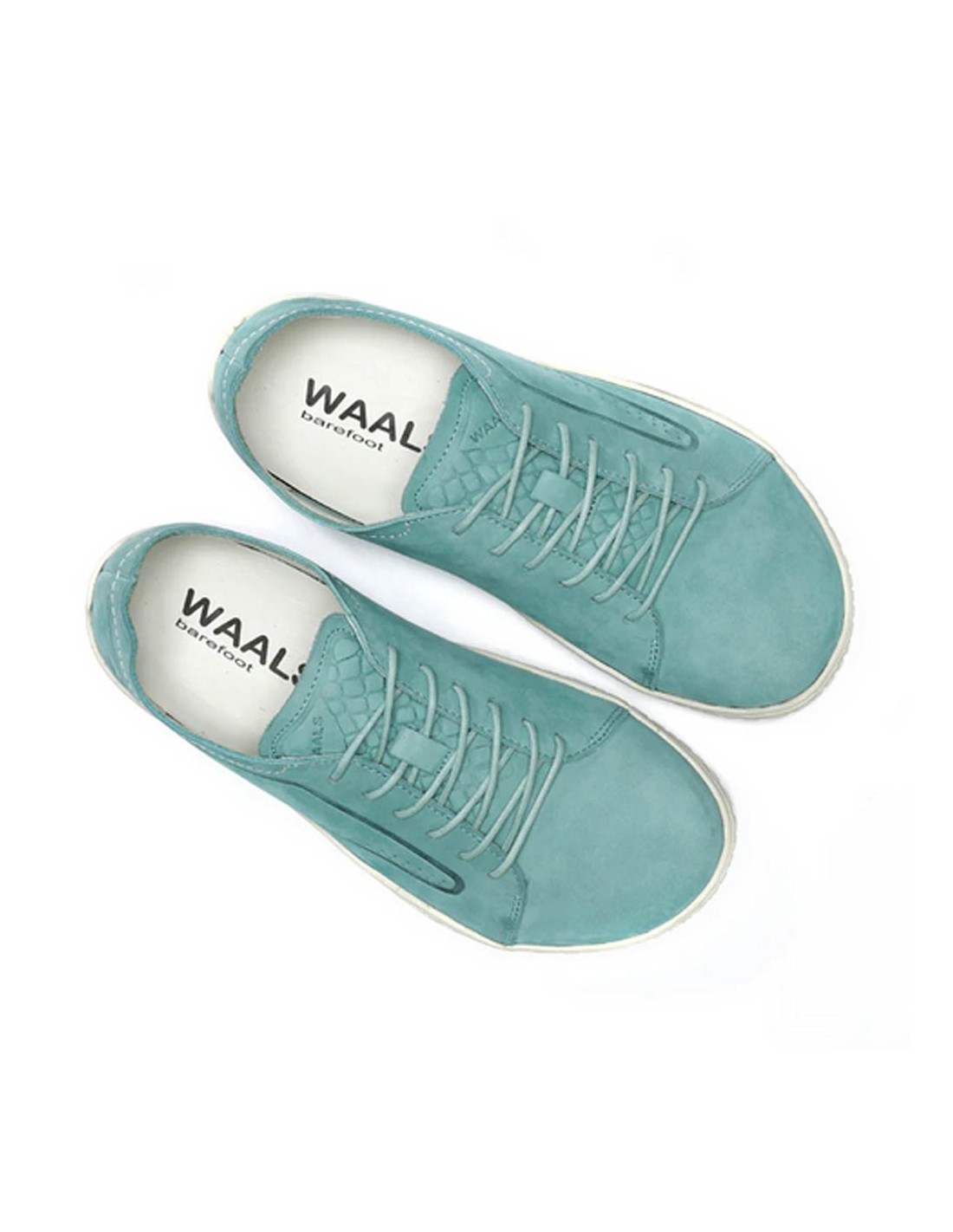 Zapatos barefoot de la marca Waals, modelo Mojave de color azúl Aqua. Están hechas con piel de la mejor calidad, y su suela de goma es muy flexible y ligera, perfecta para cualquier terreno. Permiten una gran libertad de movimiento a los pies.