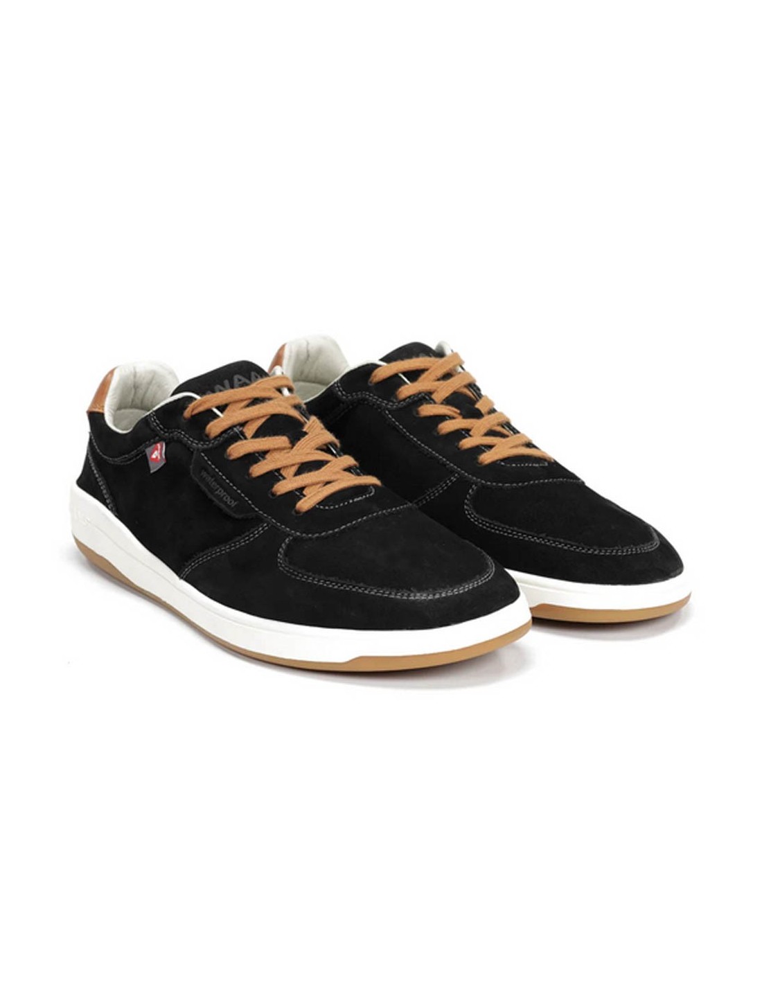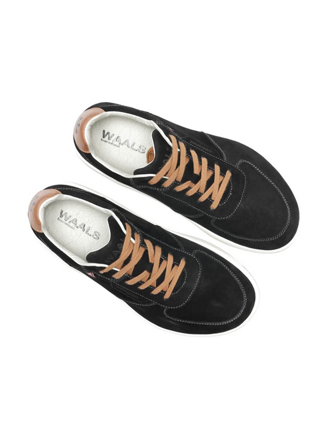 Zapatos deportivos de la marca Waals, modelo Tromso de color negro. Este calzado barefoot imita la forma natural de los pies y les permite una gran libertad de movimiento. Su suela de goma es muy flexible, amplia y plana.
