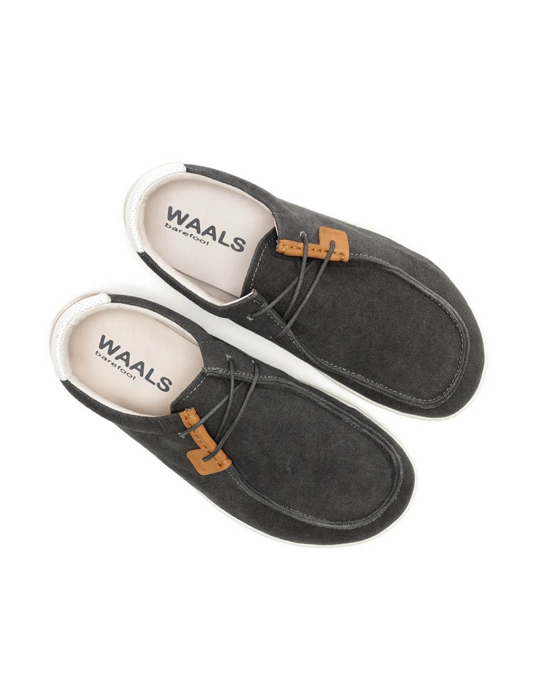 Calzado barefoot de la marca Waals, modelo Atacama de color gris oscuro. Estas deportivas están hechas con materiales textiles y pieles de las mejores calidades. Su suela de goma es amplia, plana y flexible y permite una gran libertad de movimiento.