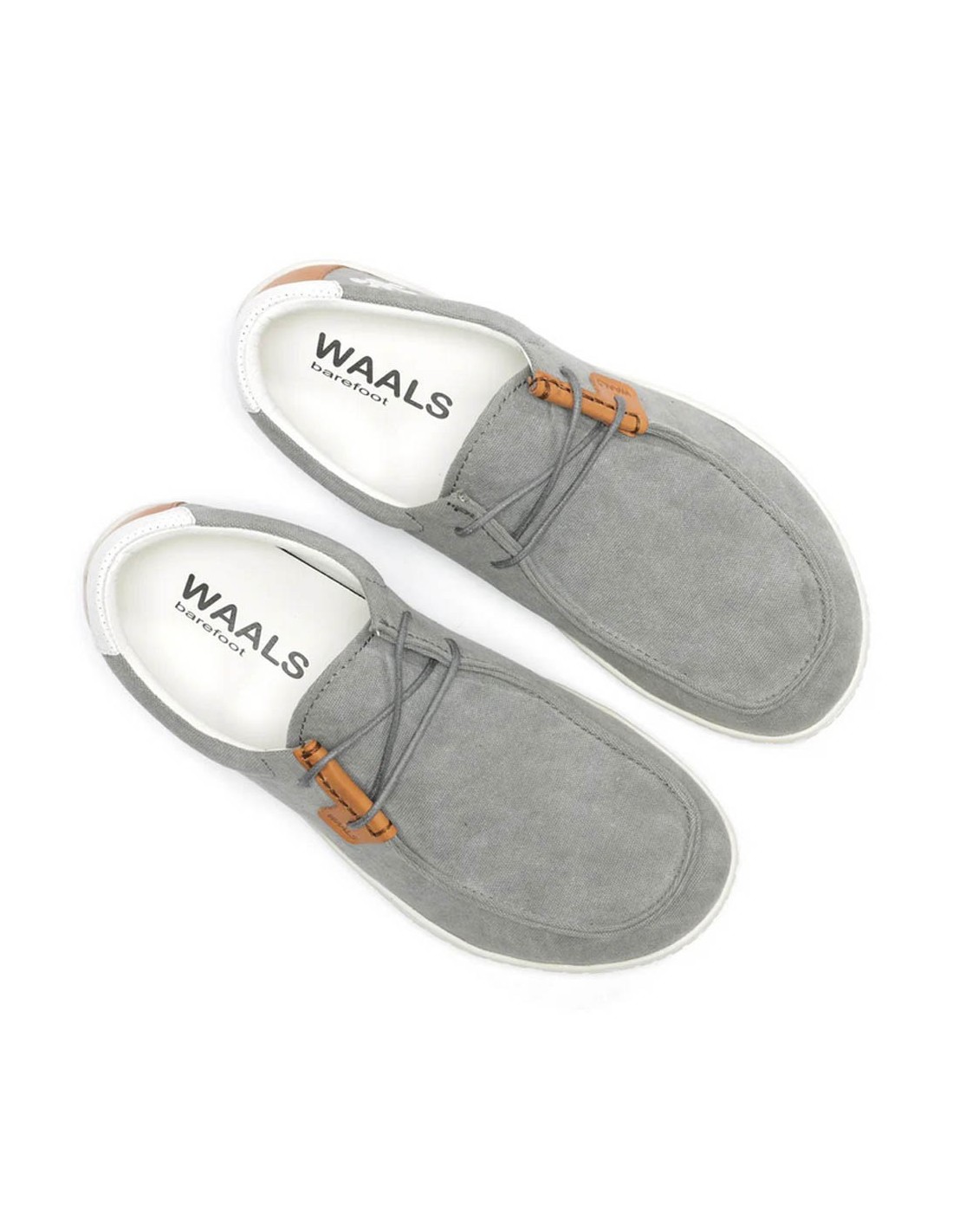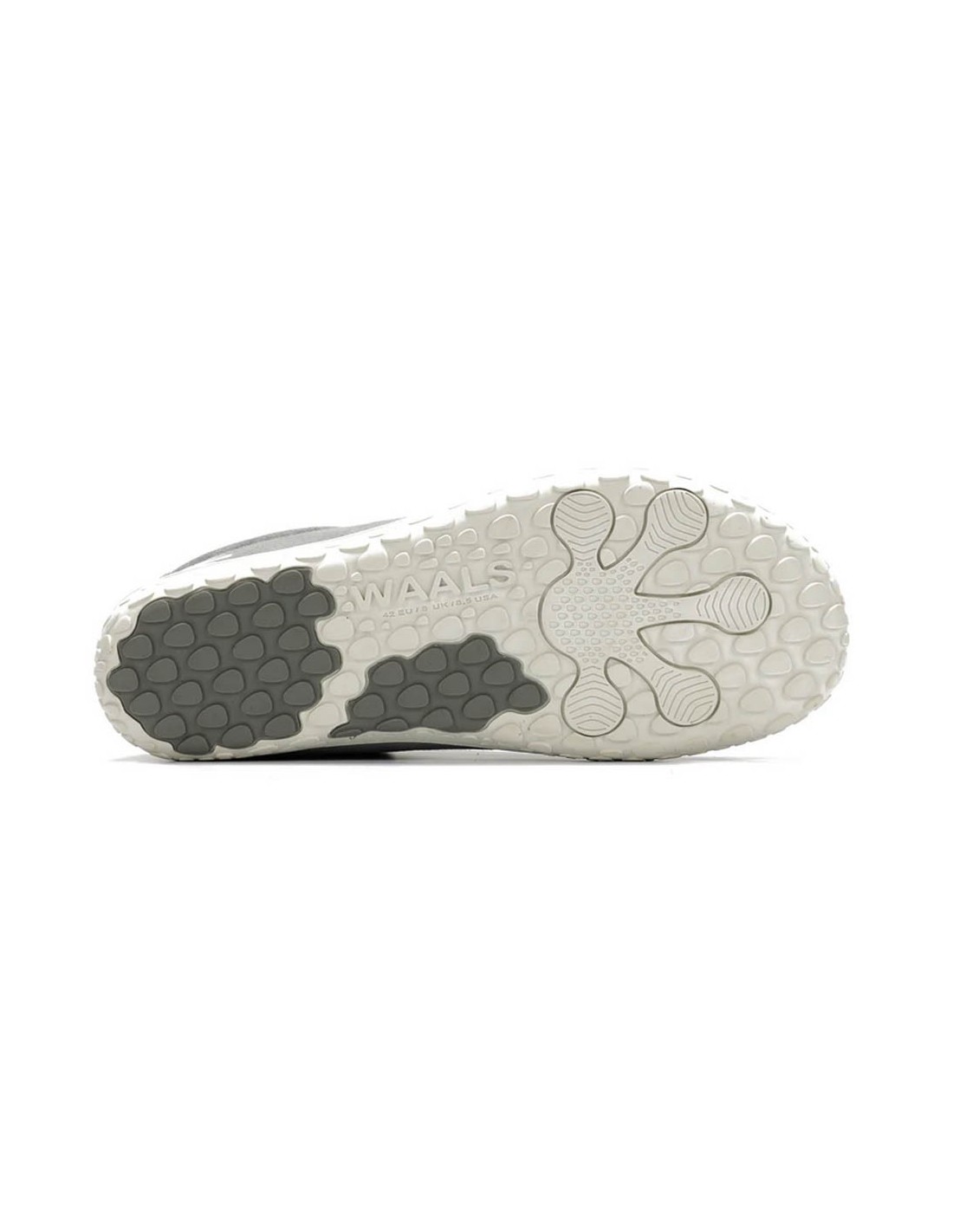 Calzado barefoot de la marca Waals, modelo Atacama de color gris claro. Tienen una suela de goma que imita la forma natural de los pies y permite una gran libertad de movimiento. Calzado cómodo y estiloso, perfecto para un look casual y veraniego.