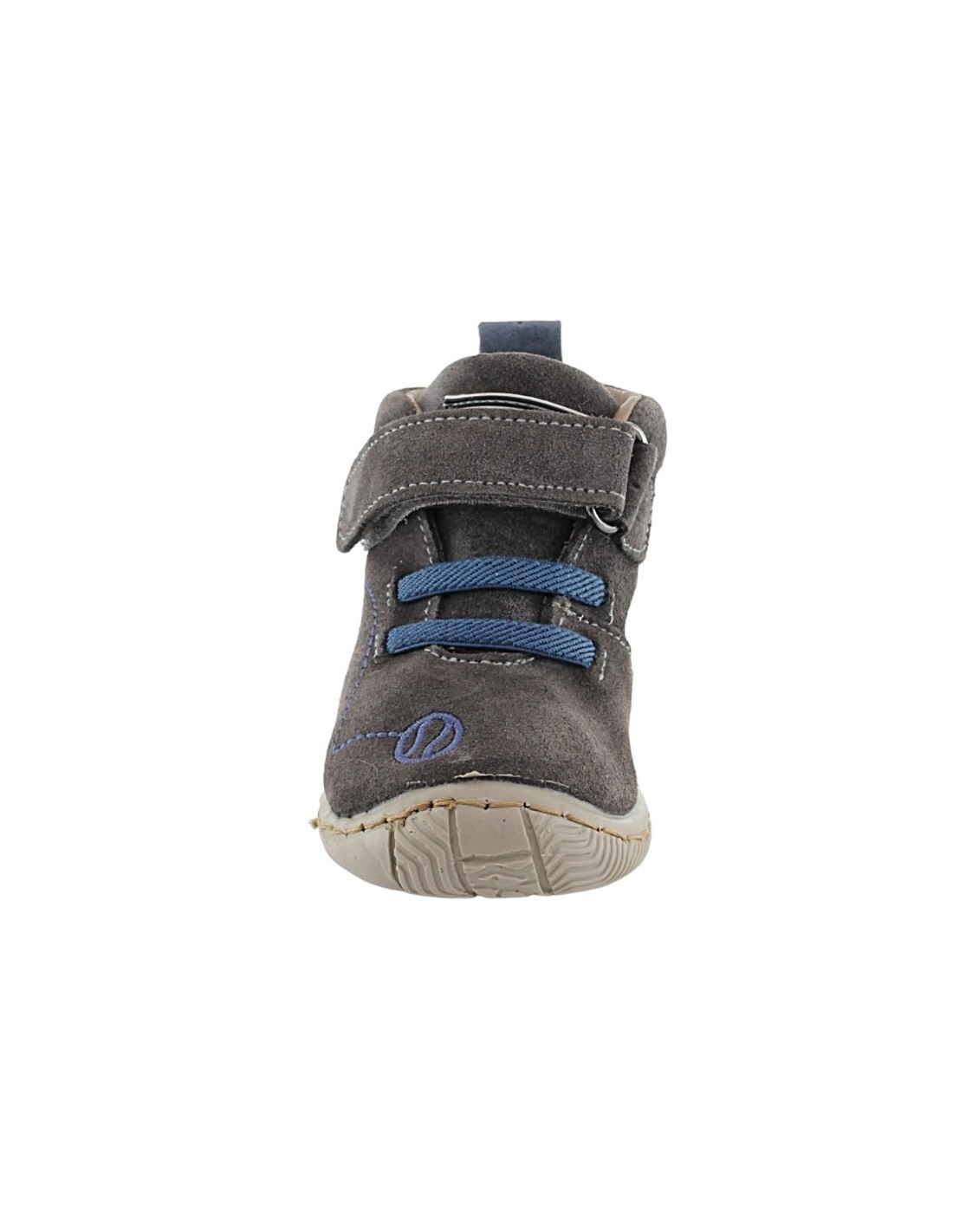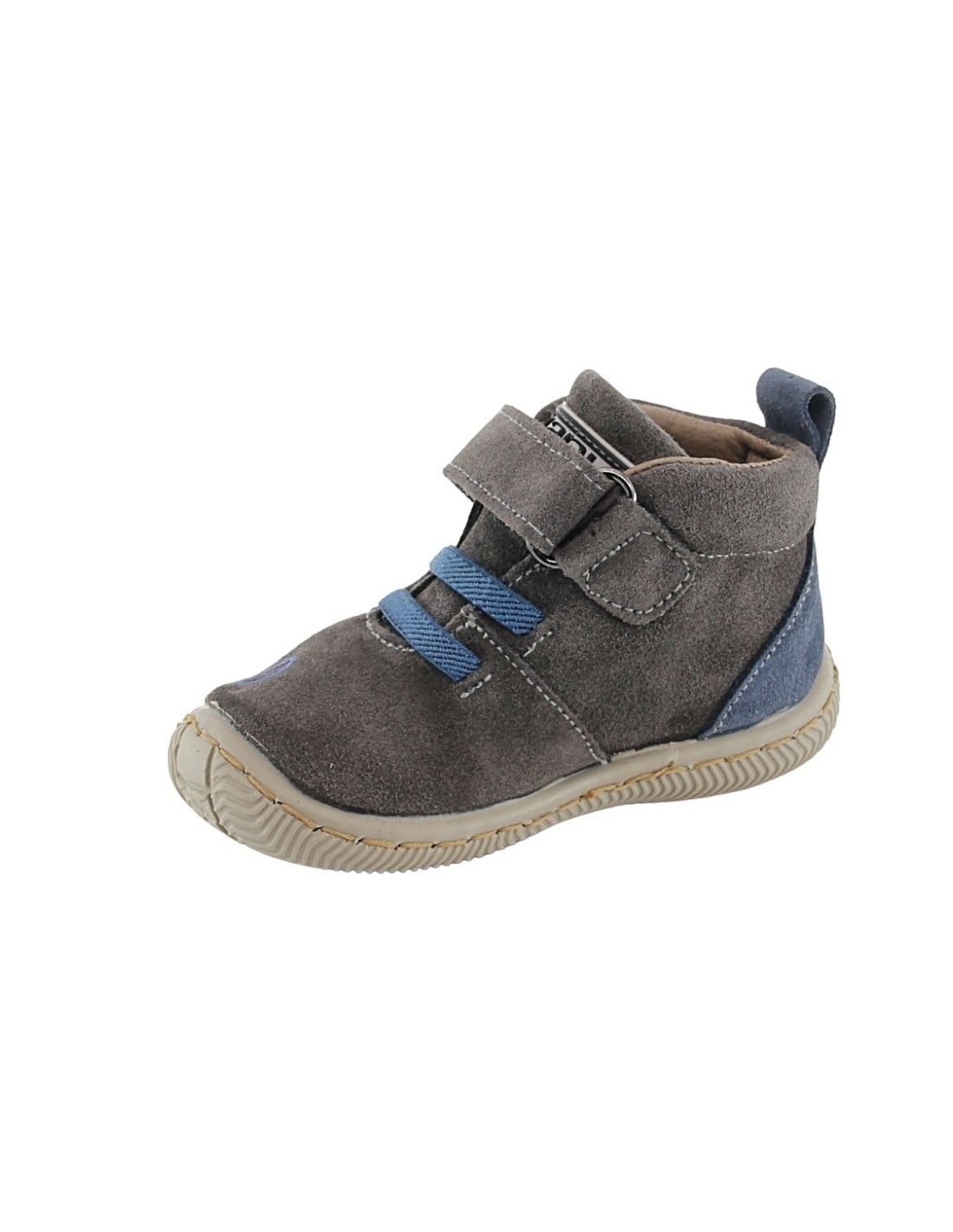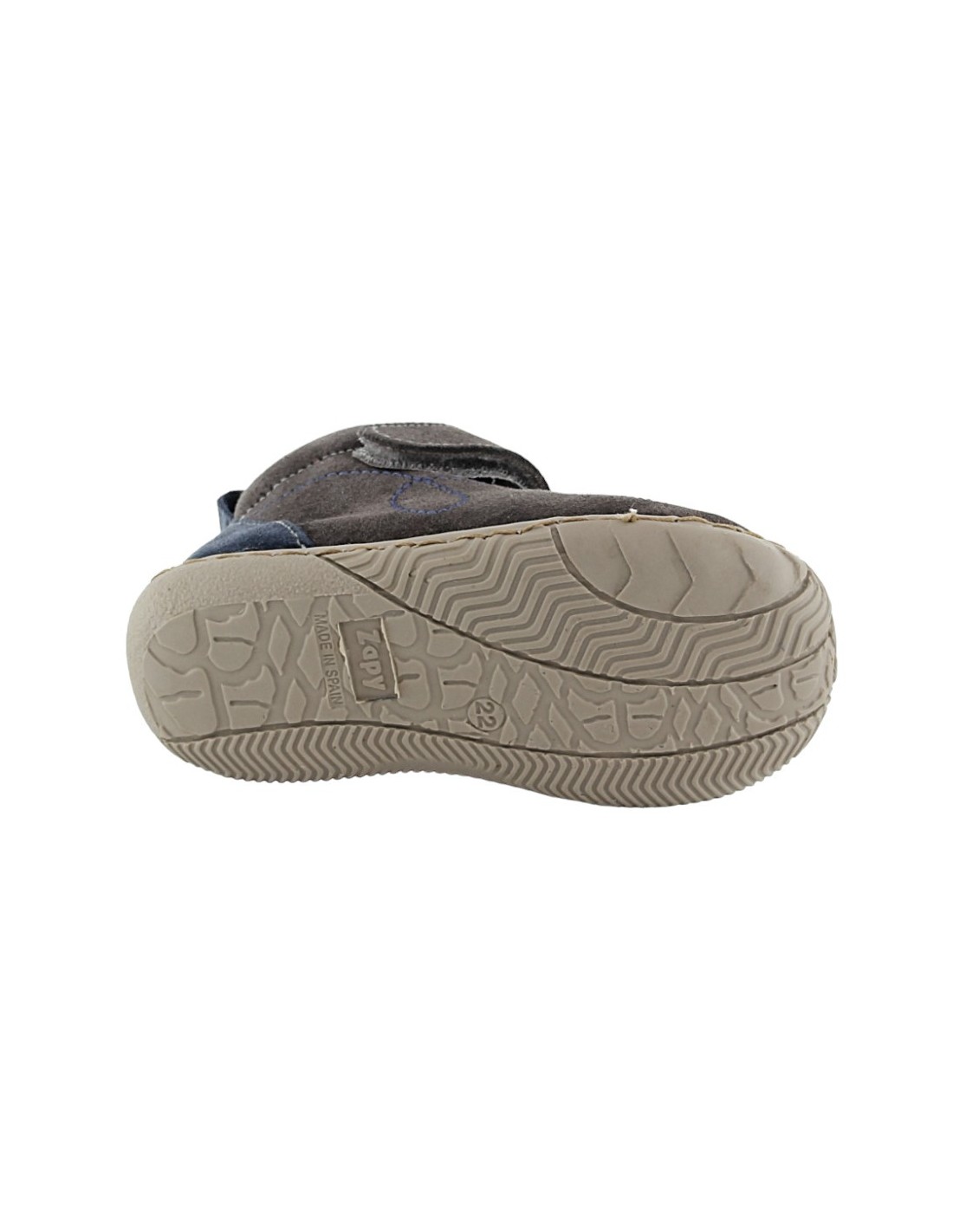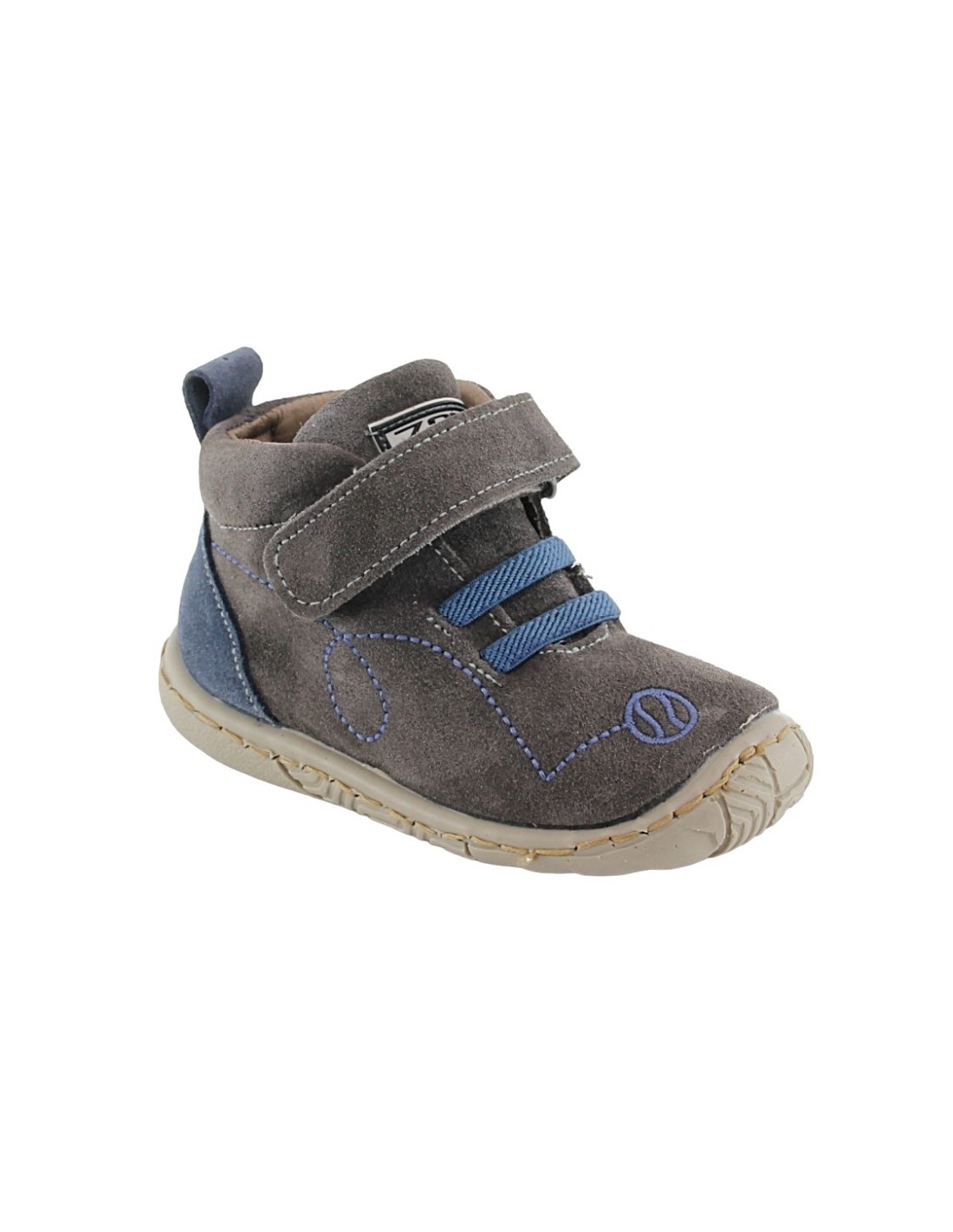 Botines de la marca Zapy, modelo AF70460 de color gris con detalles azules.Se ajustan a los pies gracias a su cierre con velcro y sus cordones elásticos. Este producto tiene un ligero drop.