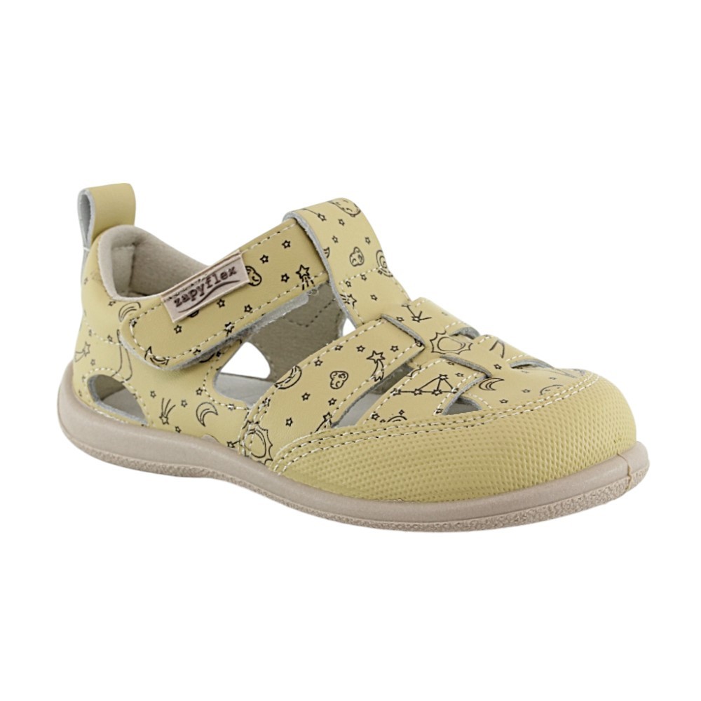 Sandalias cerradas de la marca ZapyFlex, modelo de color verde Lima. Este calzado es respetuoso con el crecimiento y desarrollo natural de los pies y evita restricciones de movimiento. Se ajustan a los pies gracias a su cierre con velcro.